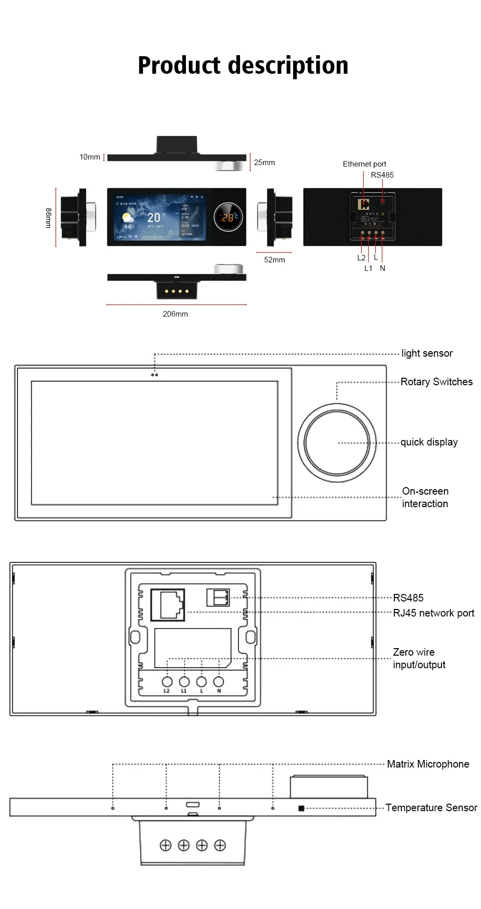 Смарт-панель Jianshu S8 з 6-дюймовим екраном призначена для централізованого керування системою «розумного дому». Пристрій поєднує сенсорний дисплей, поворотну ручку керування та підтримку голосових команд, забезпечуючи зручний і швидкий доступ до освітлення, сценаріїв та інших підключених пристроїв.