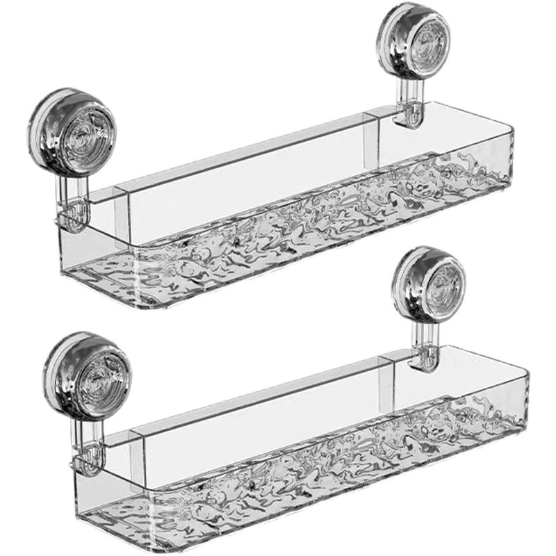 Сучасна акрилова полиця для ванної кімнати з кріпленням на потужні вакуумні присоски — ідеальне рішення без свердління стін. Підходить для зберігання косметики, шампунів, гелів для душу та аксесуарів.