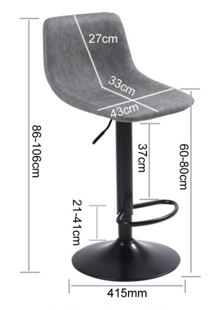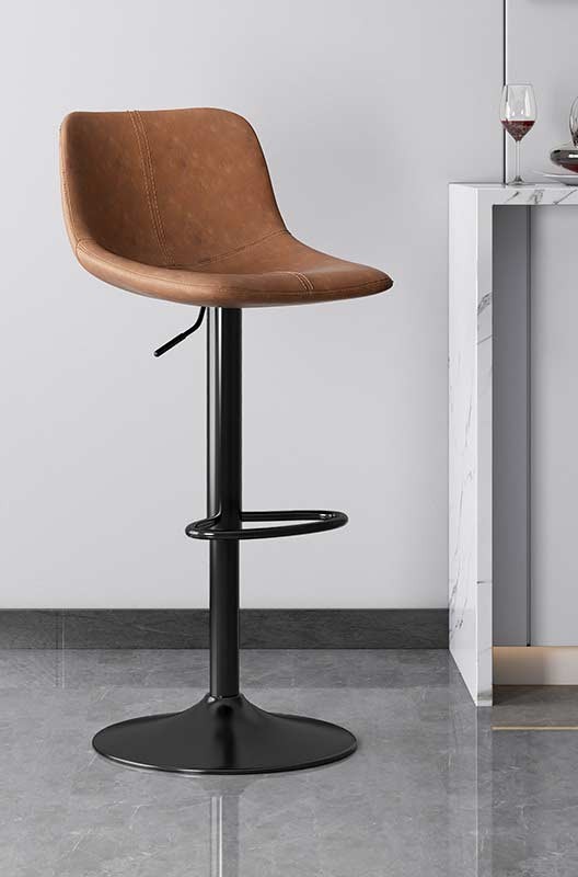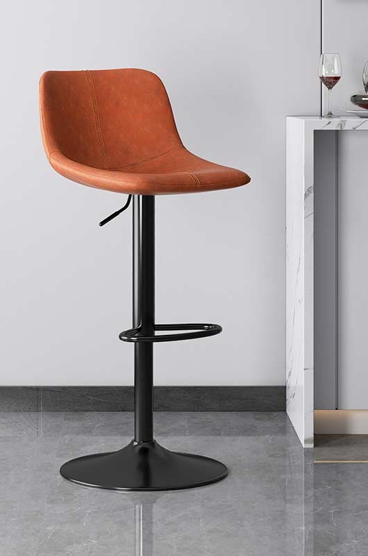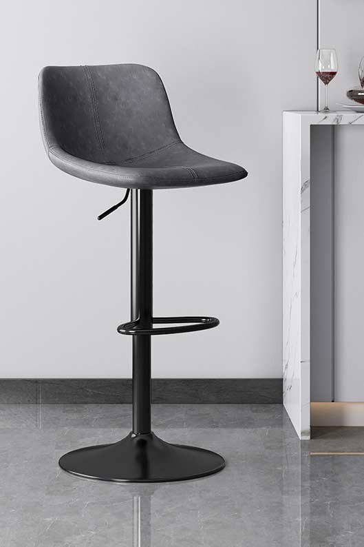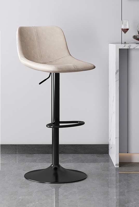 Сучасний барний стілець у мінімалістичному дизайні стане стильним доповненням кухні, барної стійки, кафе або ресторану. Ергономічне сидіння зі спинкою забезпечує комфорт під час сидіння, а м’яка оббивка зі штучної шкіри приємна на дотик і проста у догляді. Стілець оснащений газліфтом для плавного регулювання висоти та зручною підставкою для ніг. Міцна металева основа гарантує стійкість і надійність, а можливість обертання робить використання ще зручнішим.