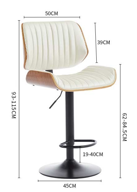 Сидіння наповнене легкою губкою високої щільності, яка забезпечує комфорт навіть при тривалому сидінні. Міцна металева основа з підставкою для ніг забезпечує стійкість та довговічність конструкції. Завдяки газліфту стілець легко регулюється по висоті та може обертатися, що робить його зручним для кухонного острова, барної стійки або кав’ярні.