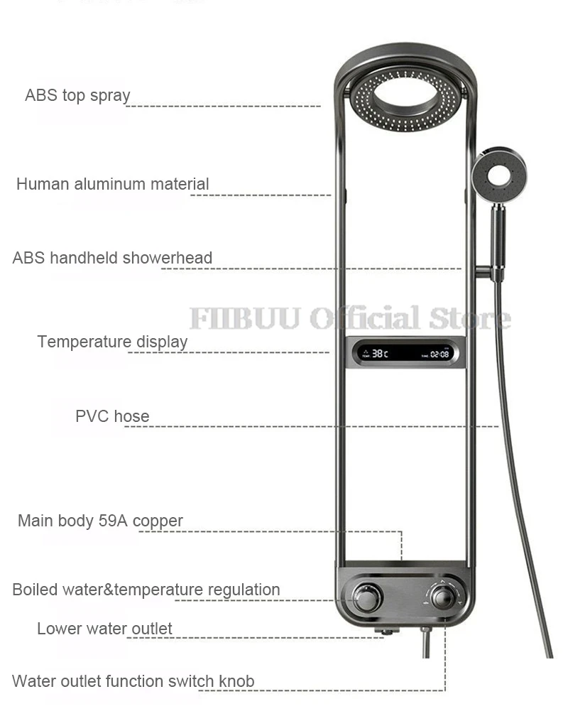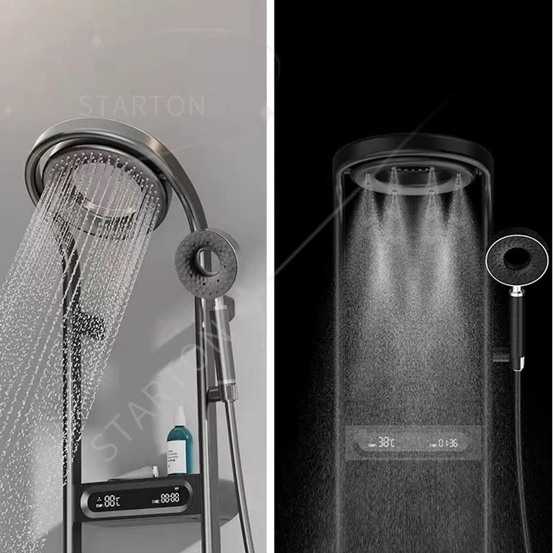 Система підтримує як стандартний режим гаряча/холодна вода, так і термостатичний режим із точним контролем температури. У версіях із цифровим дисплеєм відображається поточна температура води, а підсвітка створює стильний візуальний ефект у ванній кімнаті.