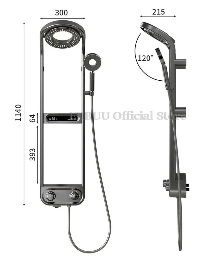 Han Baijue — це сучасна душова система у стилі Light Luxury з функцією постійної температури, LED підсвіткою та цифровим дисплеєм. Модель призначена для настінного монтажу та виготовлена з латуні, що забезпечує довговічність і стійкість до корозії.