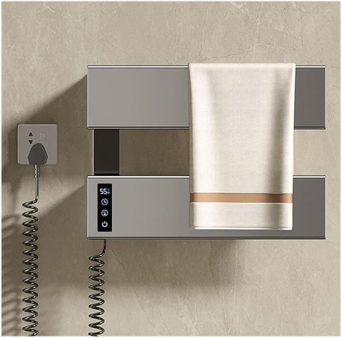Сучасна електрична сушарка для рушників із двома нагрівальними панелями — компактне та ефективне рішення для ванної кімнати. Забезпечує швидке сушіння рушників, підтримує комфортну температуру та запобігає появі вологи й неприємного запаху.