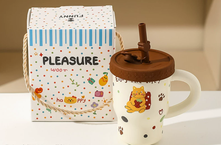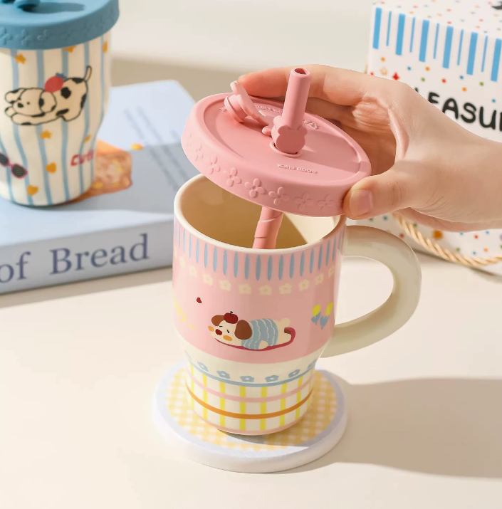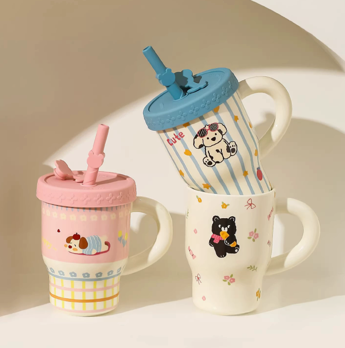 Мила та практична керамічна кружка з кришкою і трубочкою — ідеальний варіант для дітей і всіх, хто любить яскраві та позитивні аксесуари. Завдяки оригінальному дизайну з мультяшними тваринками (щенята, котики, ведмедики) ця кружка дарує гарний настрій кожного дня.