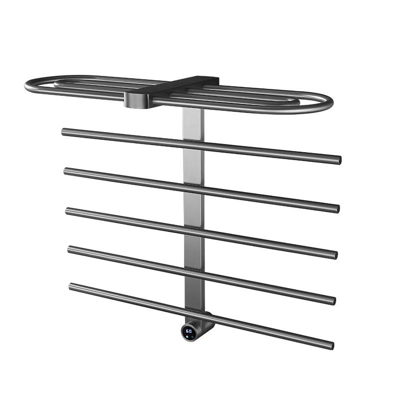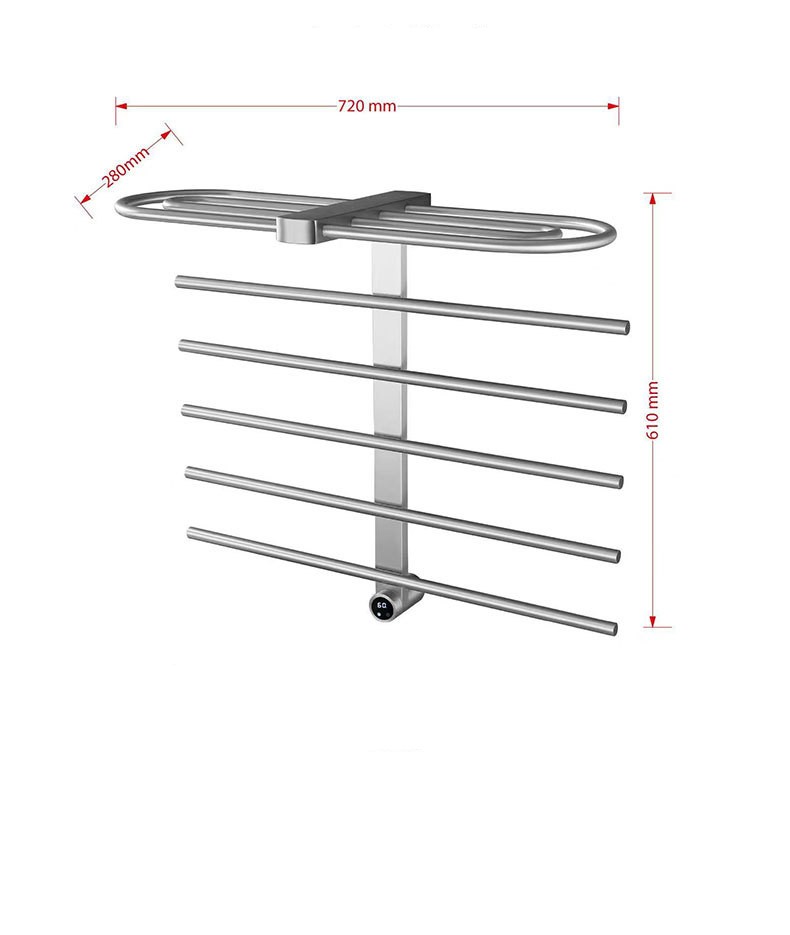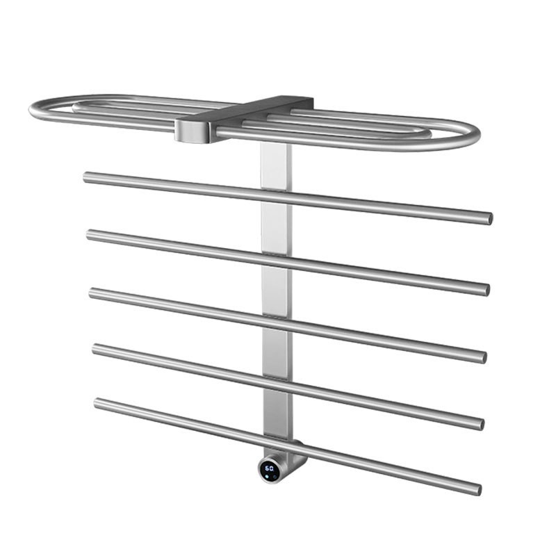 Електрична сушарка для рушників з цифровим дисплеєм — це сучасне та функціональне рішення для ванної кімнати, кухні або готелю. Модель оснащена 5 нагрівальними перекладинами та зручною верхньою полицею, що дозволяє одночасно сушити кілька рушників і економити простір.