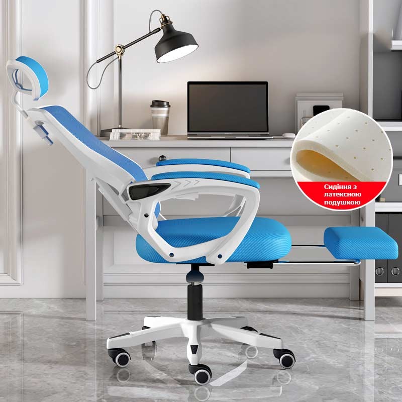 Ергономічне офісне крісло створене для комфортної роботи за комп’ютером протягом усього дня. Сітчаста спинка добре пропускає повітря, підтримує спину та зменшує навантаження на поперек. М’яке сидіння з латексною подушкою забезпечує комфорт навіть при тривалому сидінні.