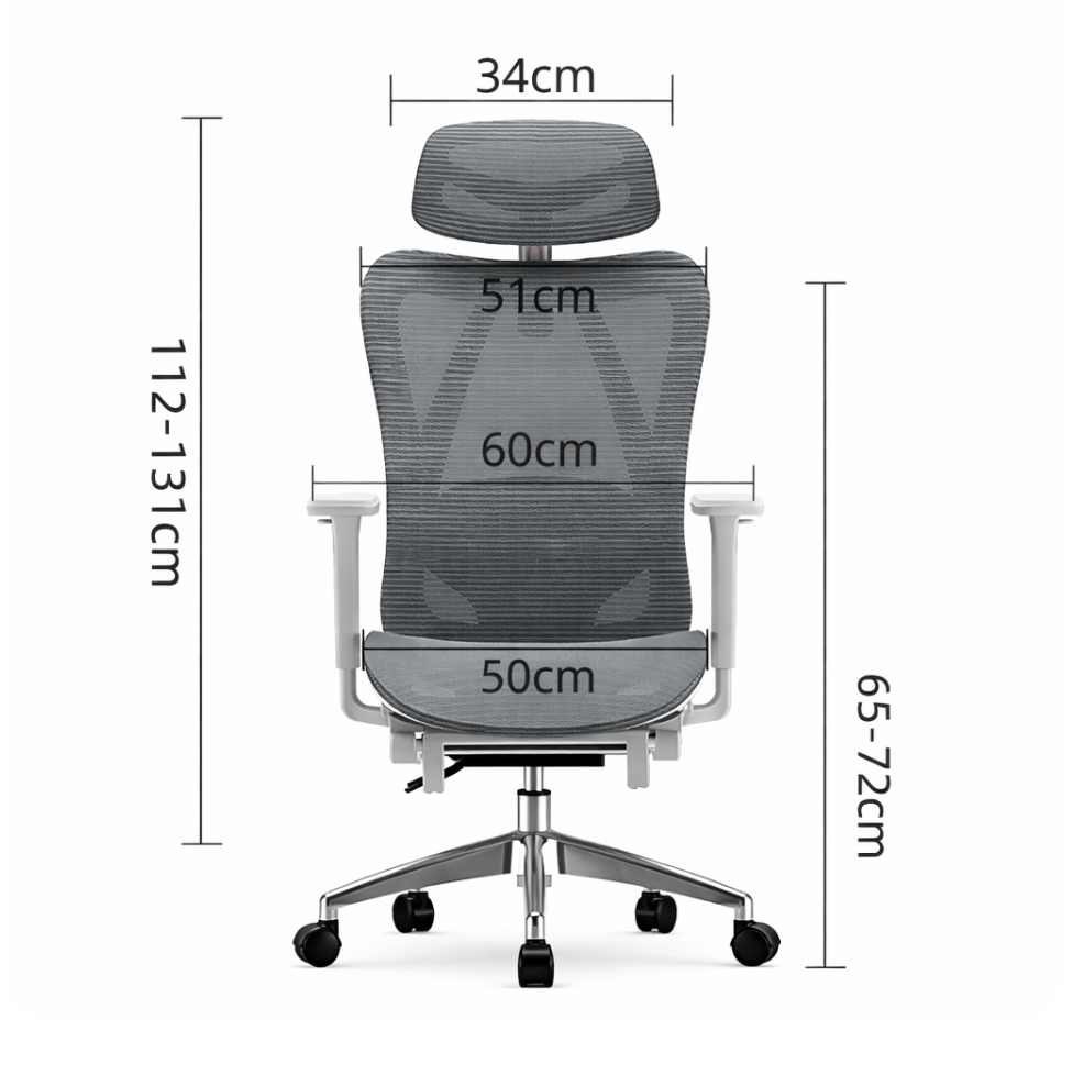 Ергономічний комп’ютерний стілець Angran T15. Біла рама + сіра сітка з губчастою подушкою.