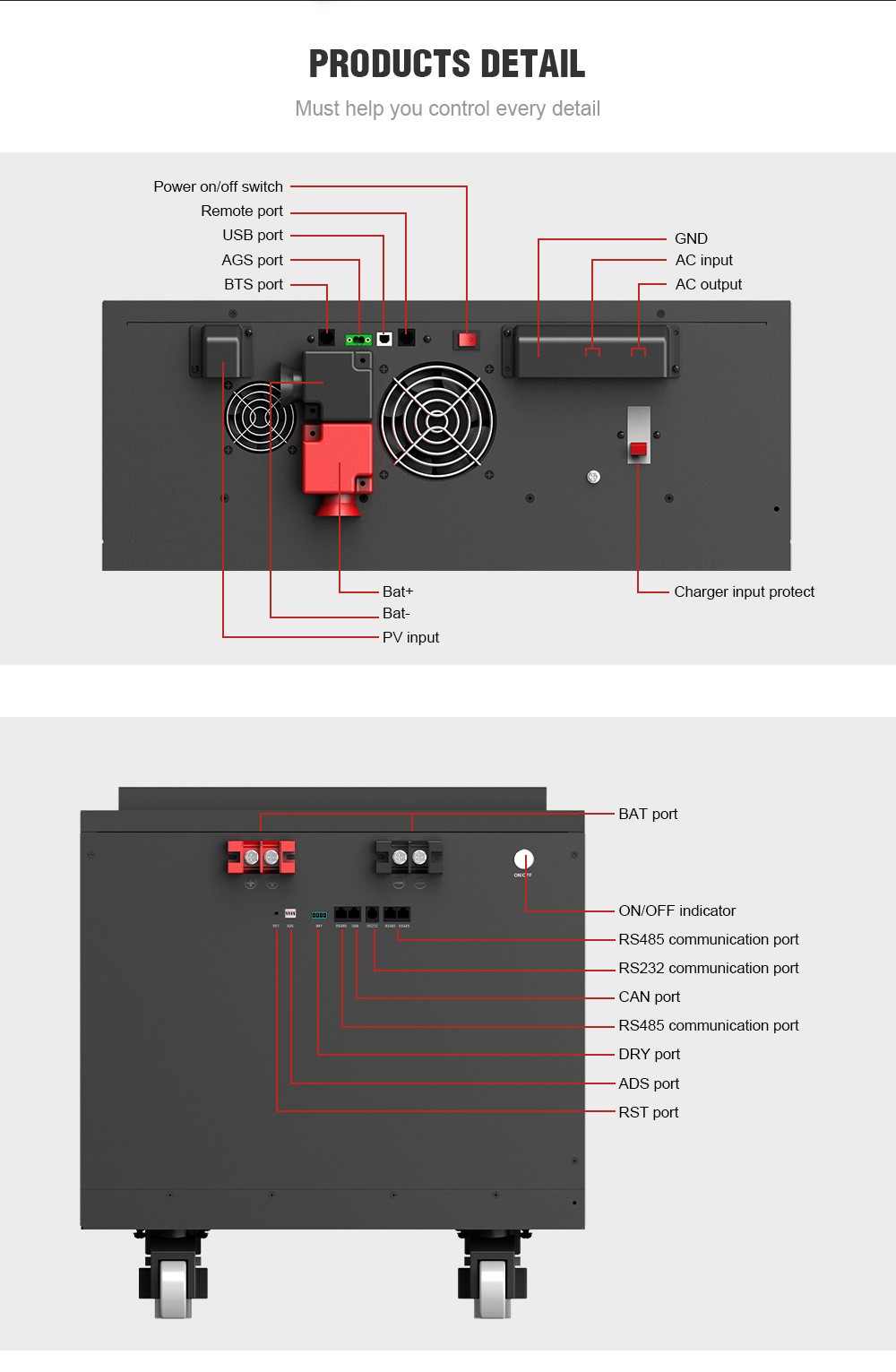 MUST HBP30-5048 LV — це автономна система зберігання енергії формату All-in-One, яка поєднує в одному корпусі інвертор чистої синусоїди 5 кВт, MPPT-контролер та літій-залізо-фосфатну батарею великої ємності.
