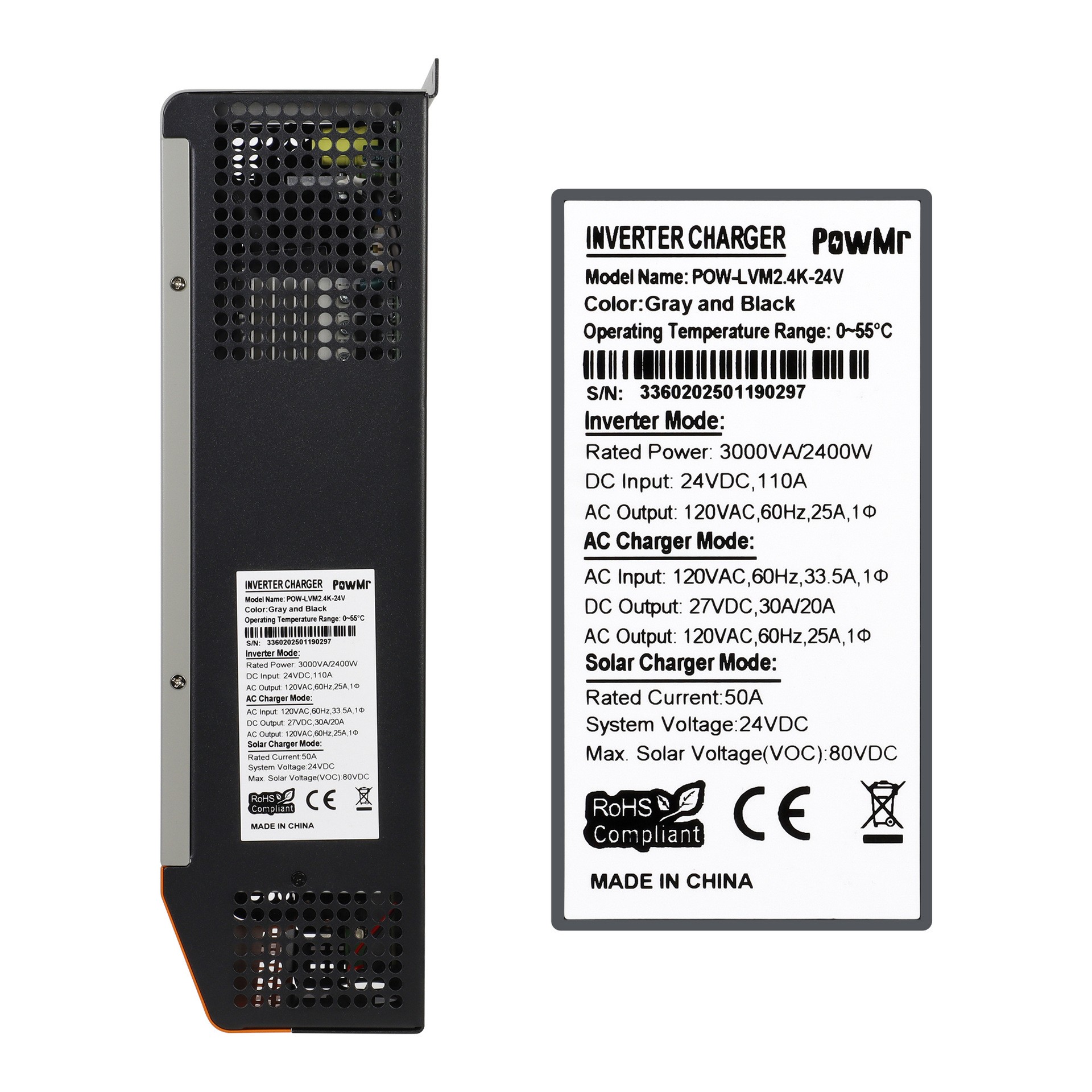 Гібридний сонячний інвертор Powmr 2400W 110/120V All-in-One для дому та off-grid систем