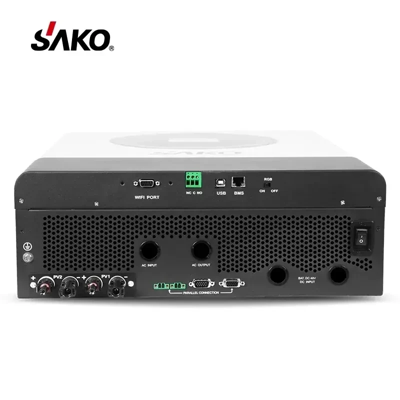 Гібридний інвертор SAKO SUNON IV призначений для систем домашнього енергозберігання та автономних сонячних електростанцій. Це рішення «all-in-one», яке поєднує інвертор чистої синусоїди, керування акумуляторами та моніторинг параметрів роботи в одному корпусі.