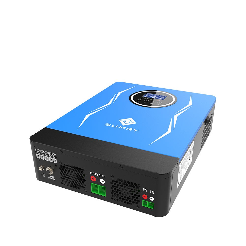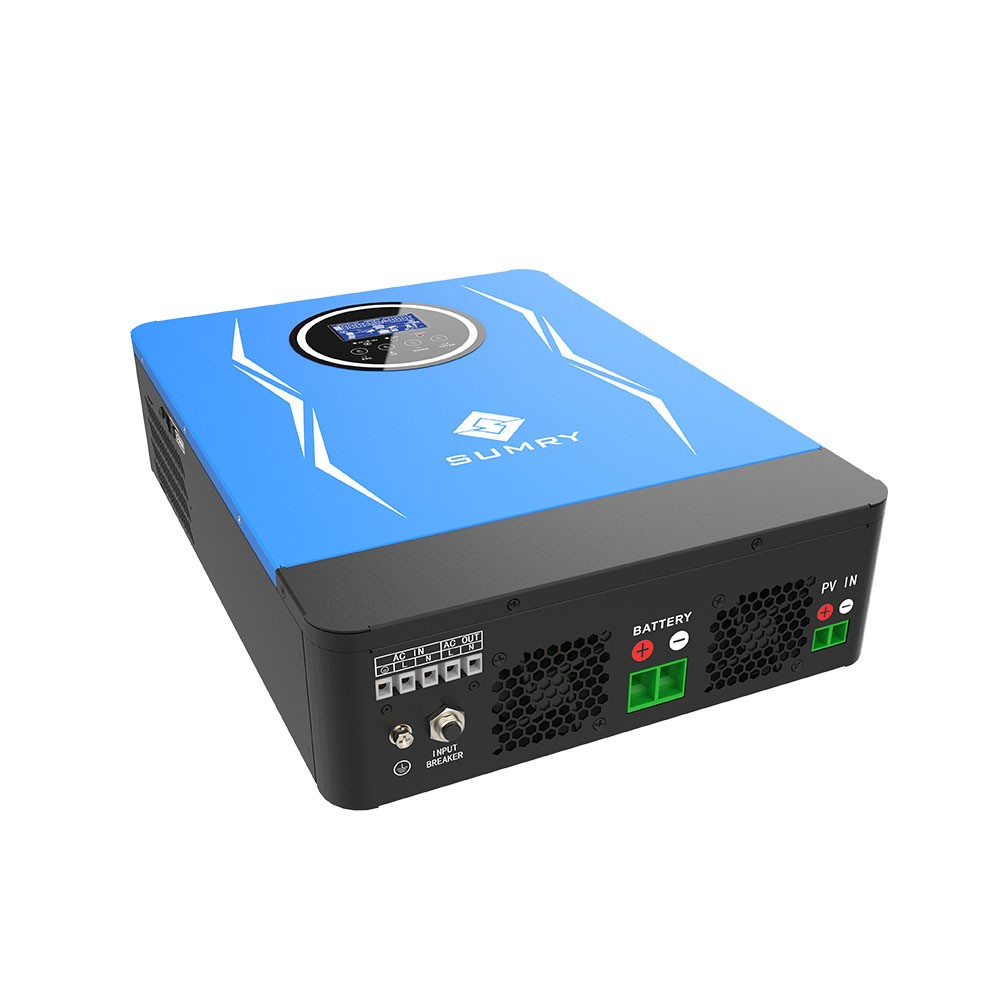 Гібридний інвертор SUMRY потужністю 1.8 кВт призначений для перетворення постійної напруги 12 В від акумуляторів або сонячних панелей у змінну 220 В для живлення побутових споживачів. Пристрій підтримує роботу з фотоелектричними системами та акумуляторними батареями, забезпечуючи стабільне електроживлення у автономних або резервних системах.