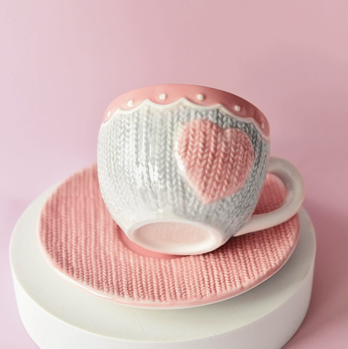 Витончений набір керамічної кавової чашки з блюдцем у ніжному ретро-стилі — ідеальне поєднання елегантності, комфорту та сучасної естетики. Дизайн натхненний «затишним светром», що додає виробу особливого шарму та тепла. М’які пастельні відтінки та рельєфна текстура створюють атмосферу затишку під час кожної чашки кави або чаю.