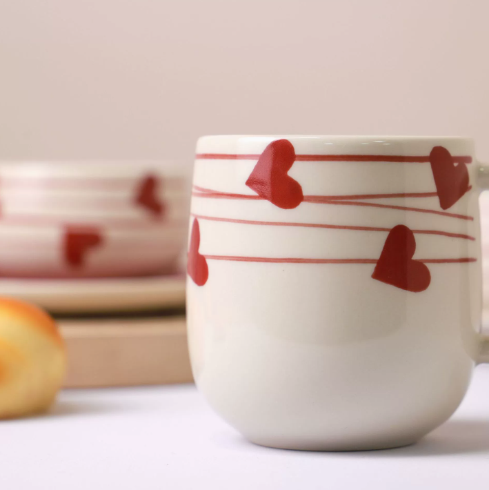 Оригінальна керамічна чашка з блюдцем «Love Line» — це стильний та ніжний набір, створений для справжніх поціновувачів естетики. Завдяки унікальному дизайну з сердечками та м’яким лініям, чашка виглядає дуже витончено та романтично.