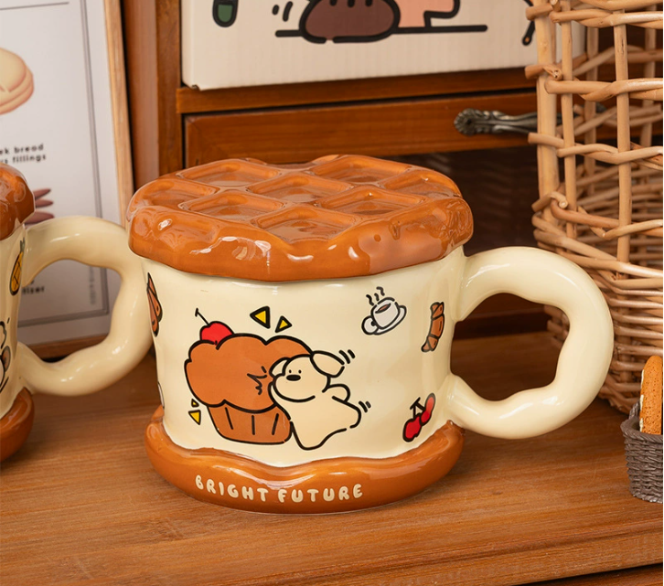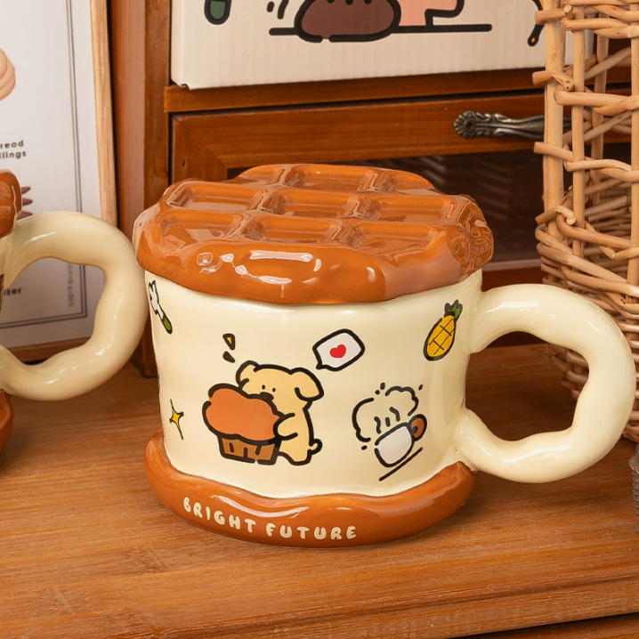 Оригінальна керамічна чашка з милим дизайном щеняти — це ідеальне поєднання функціональності та естетики. Завдяки креативній кришці у вигляді вафельного десерту та яскравому мультяшному оформленню, чашка виглядає дуже стильно та привертає увагу.