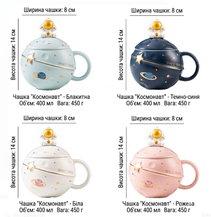 Керамічна кружка «Астронавт. Зоряне небо» з кришкою (400 мл)