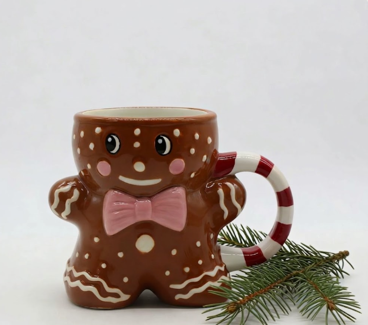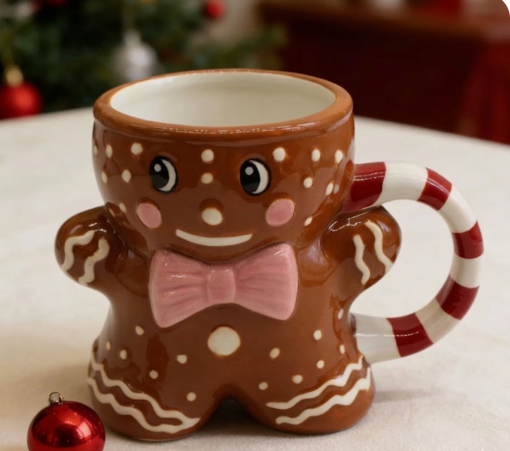 Стильна та святкова керамічна кружка у формі пряникового чоловічка — ідеальний аксесуар для зимового настрою та різдвяної атмосфери. Оригінальний дизайн із милим обличчям і декоративними деталями робить цю кружку чудовим вибором як для щоденного використання, так і для подарунка.