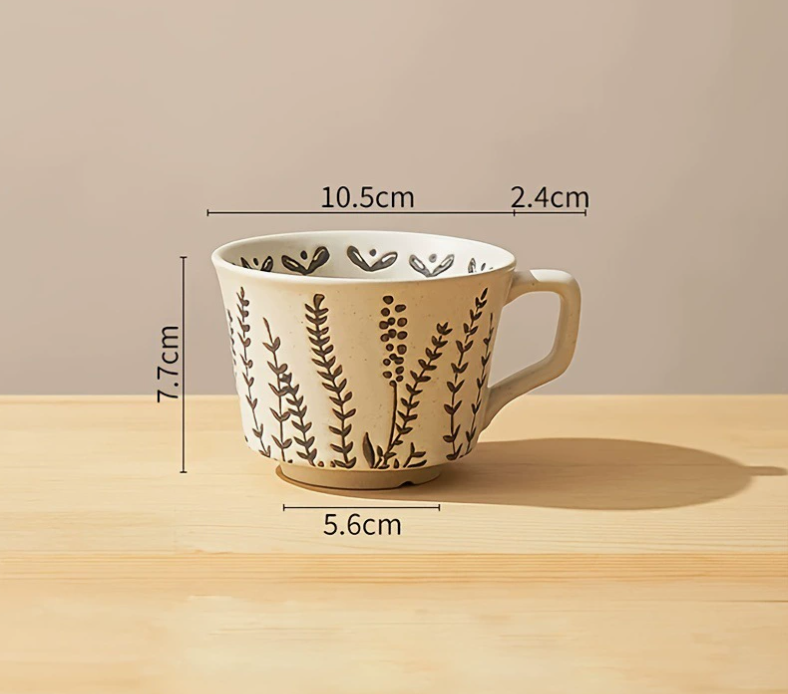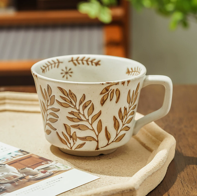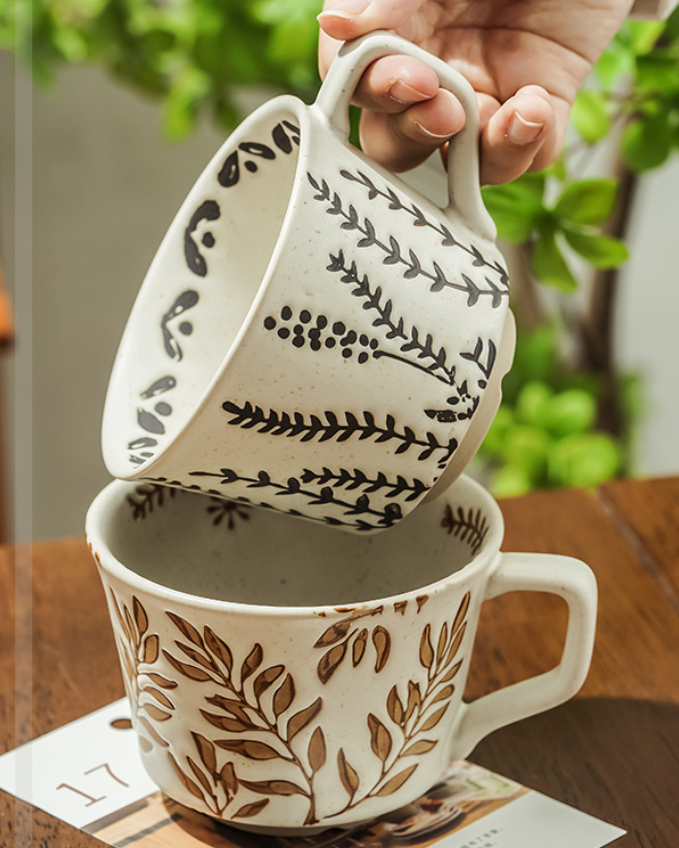 тильна керамічна кружка у скандинавському мінімалістичному стилі — це поєднання природної естетики, простоти та функціональності. Виріб виконаний з білого фарфору та прикрашений акуратним ручним розписом у вигляді рослинних мотивів, що додає виробу унікальності та затишку.