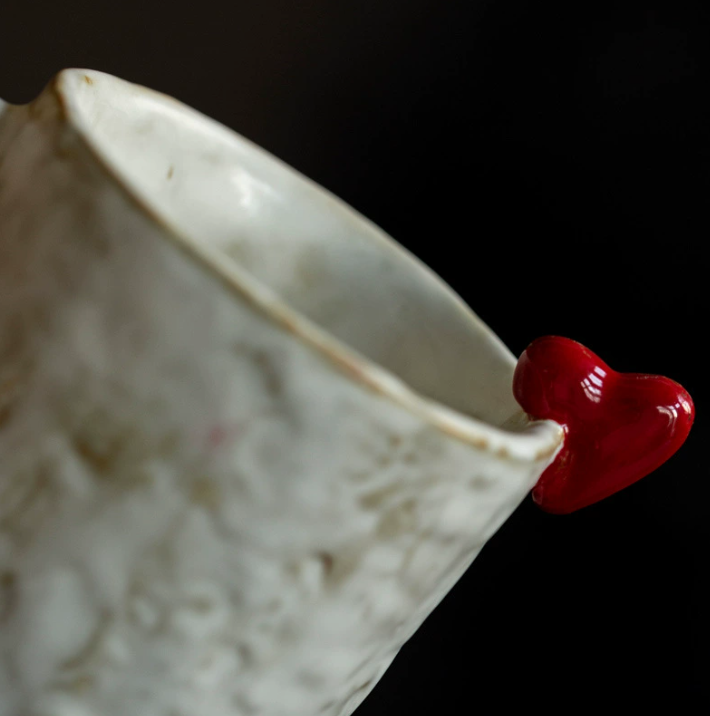 Сучасна керамічна кружка з ніжним акцентом у вигляді декоративного серця — це поєднання мінімалізму та емоційного дизайну. Лаконічна форма доповнена об’ємним елементом у вигляді серця, що робить кружку особливою та привабливою.