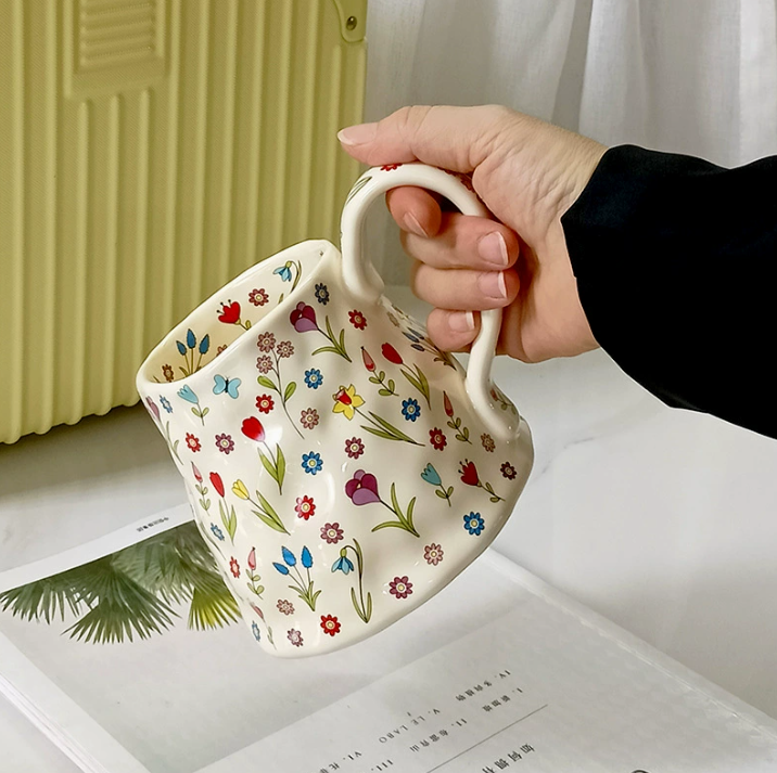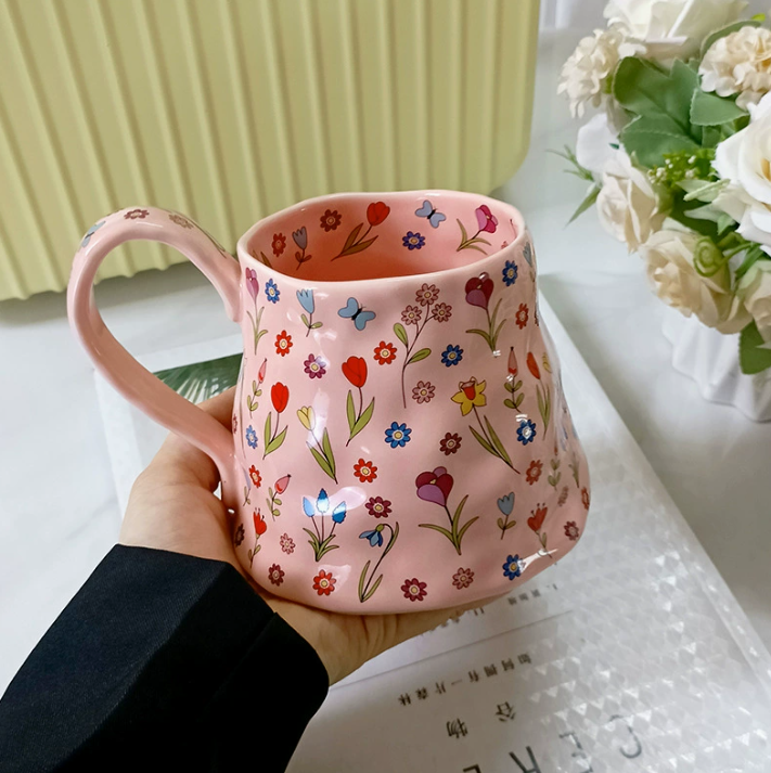 Керамічна кружка з квітковим принтом у стилі light luxury елегантна чашка для кави та чаю, 600 мл