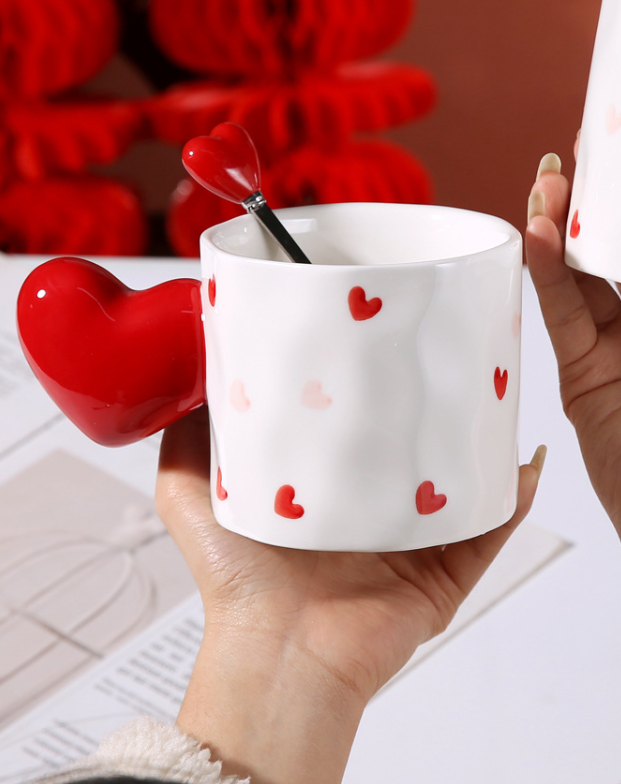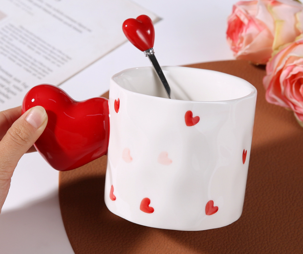 Керамічна кружка з ручкою у формі серця та ложкою, 401–500 мл