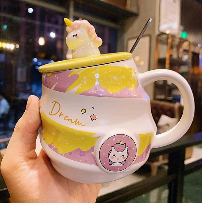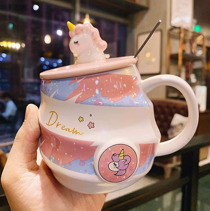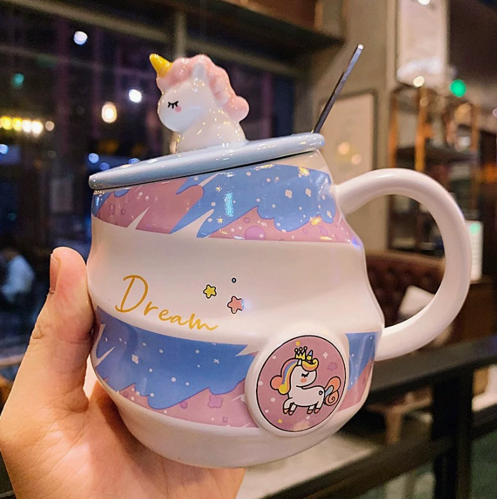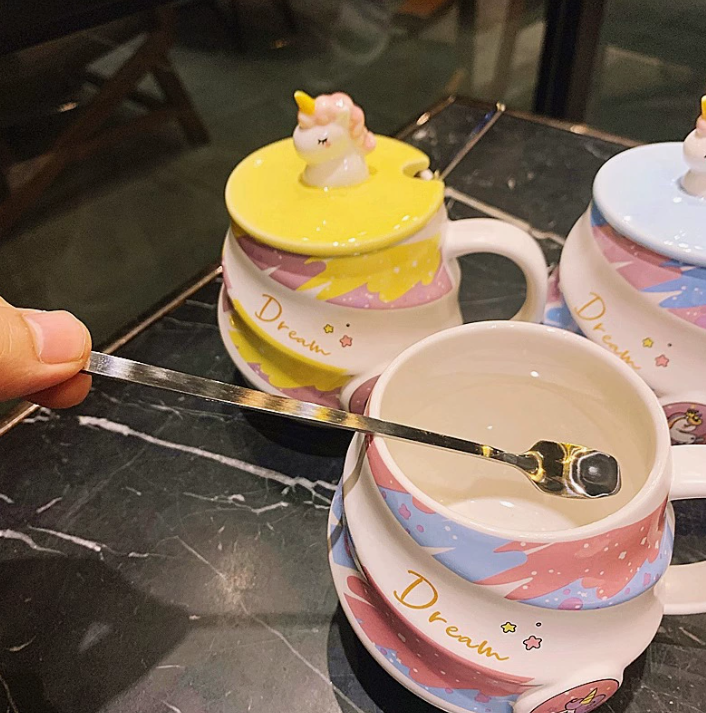 Керамічна кружка з єдинорогом з кришкою та ложкою (480 мл)
