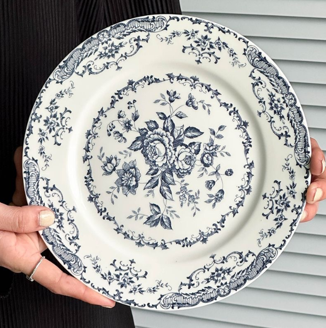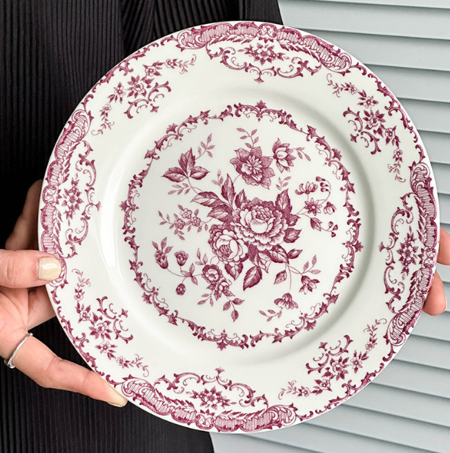 Вишукана керамічна тарілка у пасторальному ретро-стилі стане елегантним доповненням до вашого столового сервізу. Класичний квітковий орнамент та витончений дизайн нагадують традиційний європейський фарфор і створюють атмосферу затишку та витонченого сервірування.
