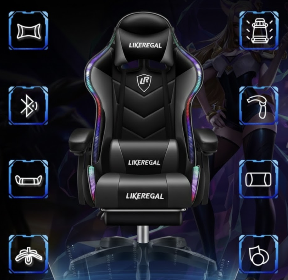 Кіберспортивний ігровий стілець Bani G03 Чорний + підніжка + різнокольорові вогні + аудіо