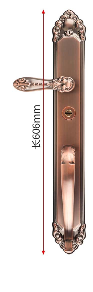 Комплект ROOK 9058-B39 — це готове рішення для встановлення на вхідні або захисні двері. Подовжена декоративна панель (606 мм) у класичному європейському стилі поєднується з функціональним замковим механізмом.