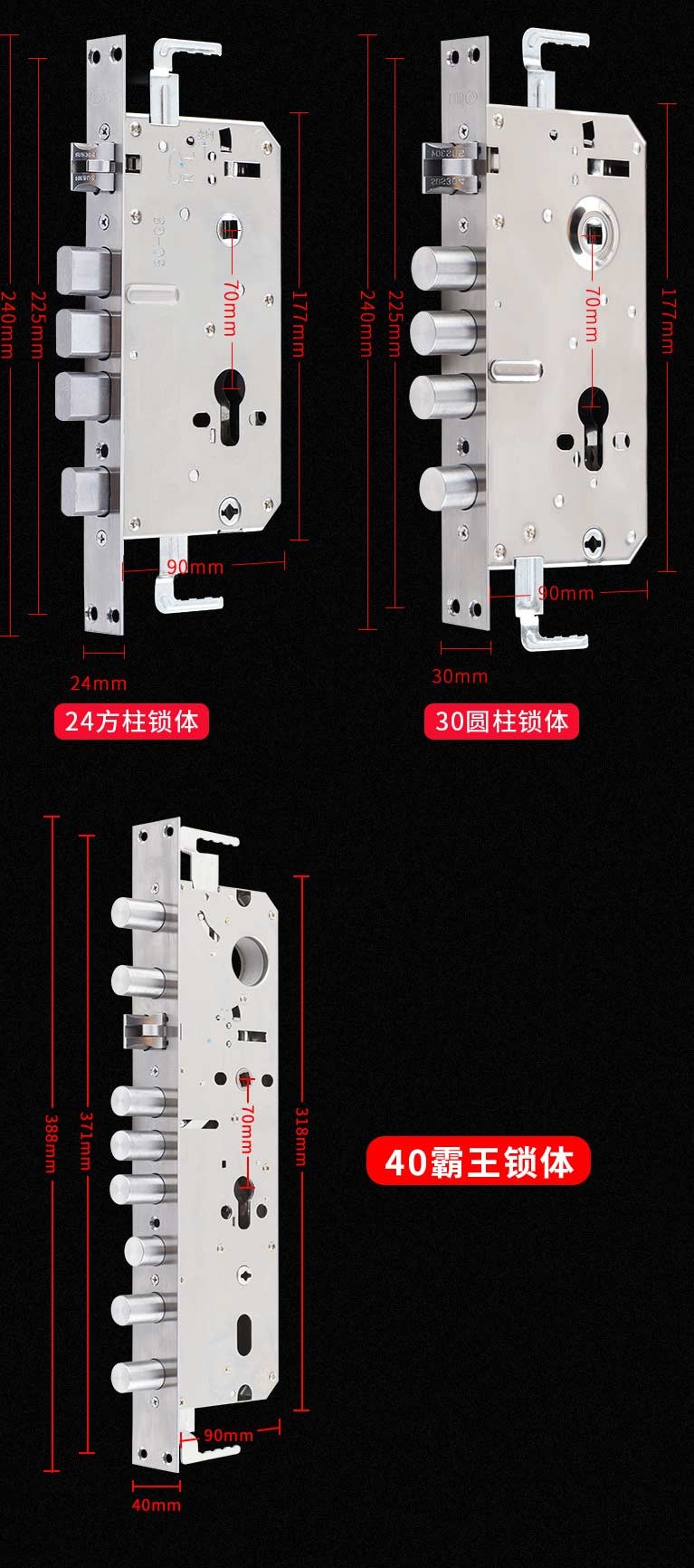 У комплект входить панель з ручкою, корпус замка та циліндр класу C. Замок має багаторигельну конструкцію (кілька точок замикання), що підвищує рівень безпеки.