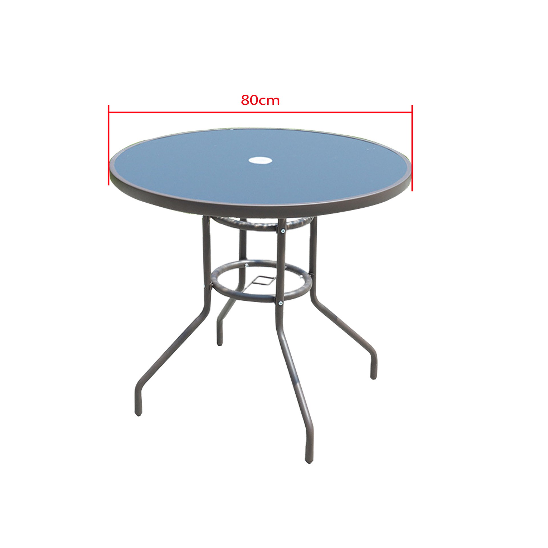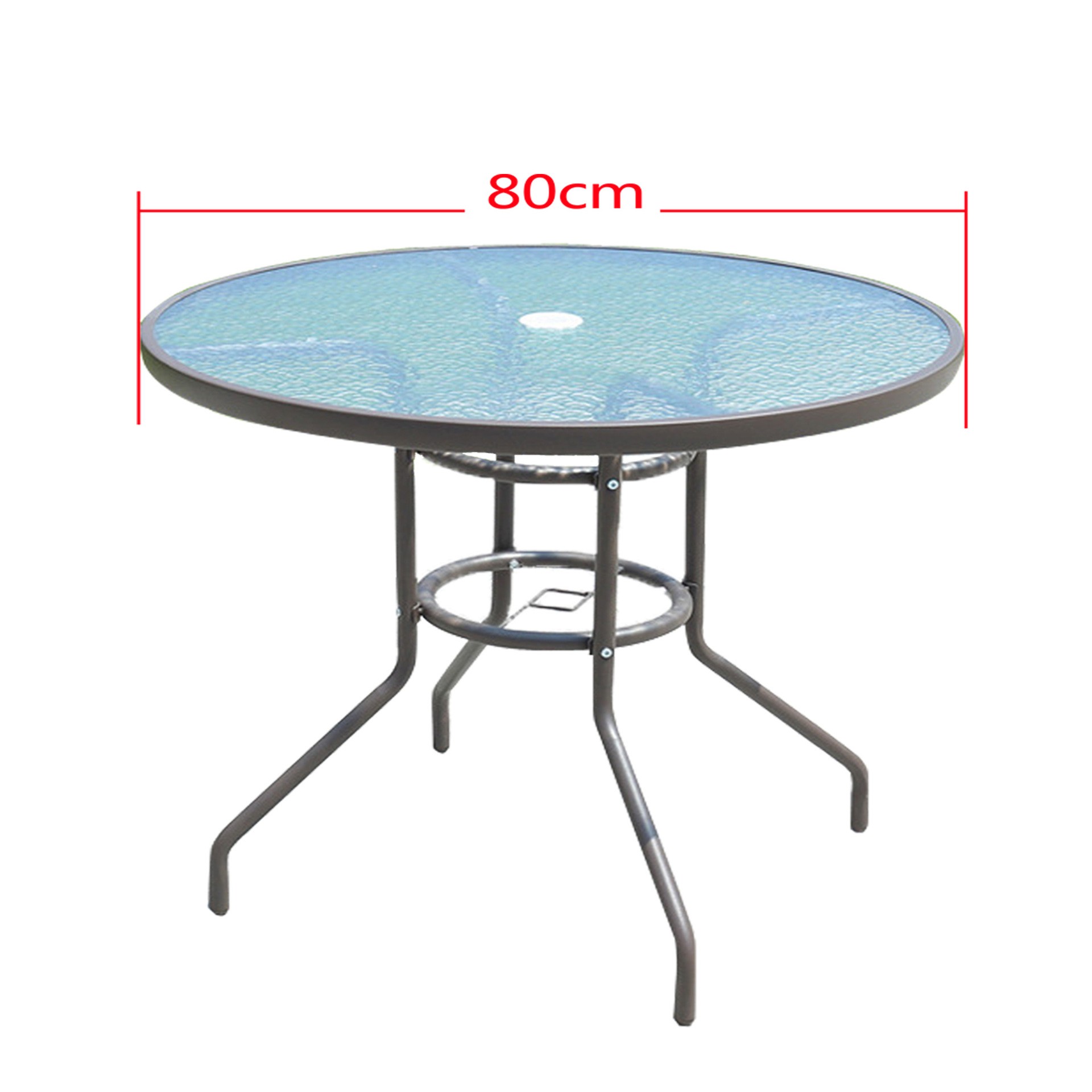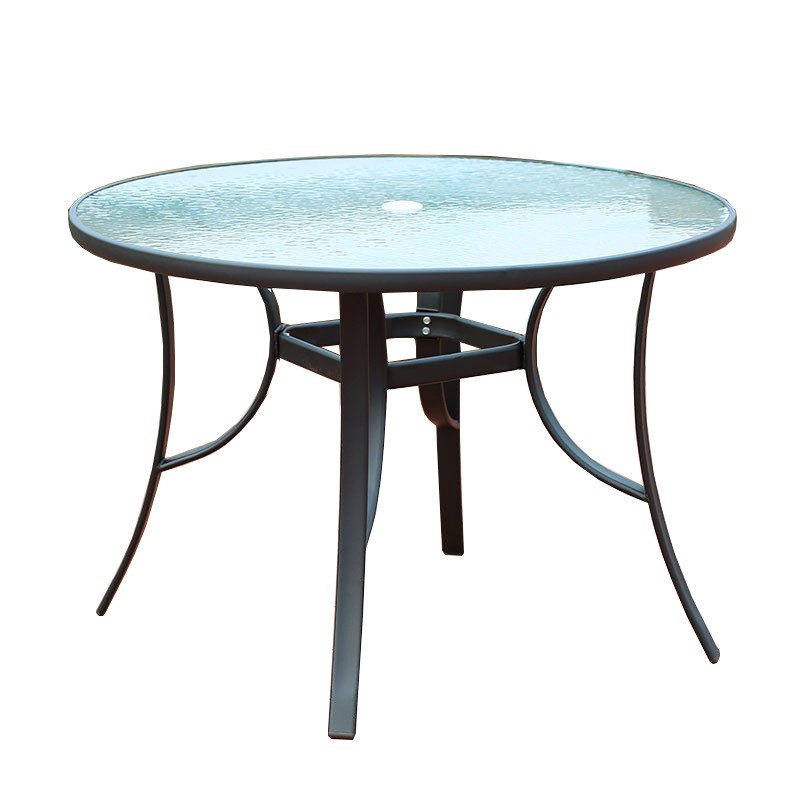 Круглий скляний стіл Water Ripple — практичне рішення для тераси, двору, кафе або зони біля басейну.