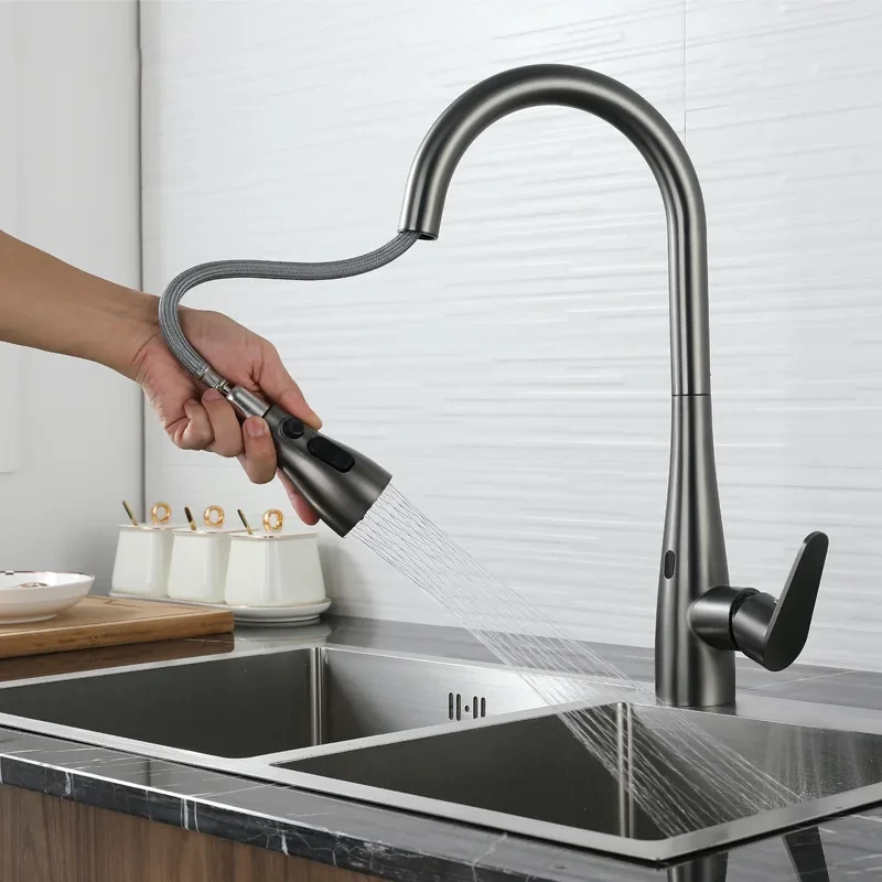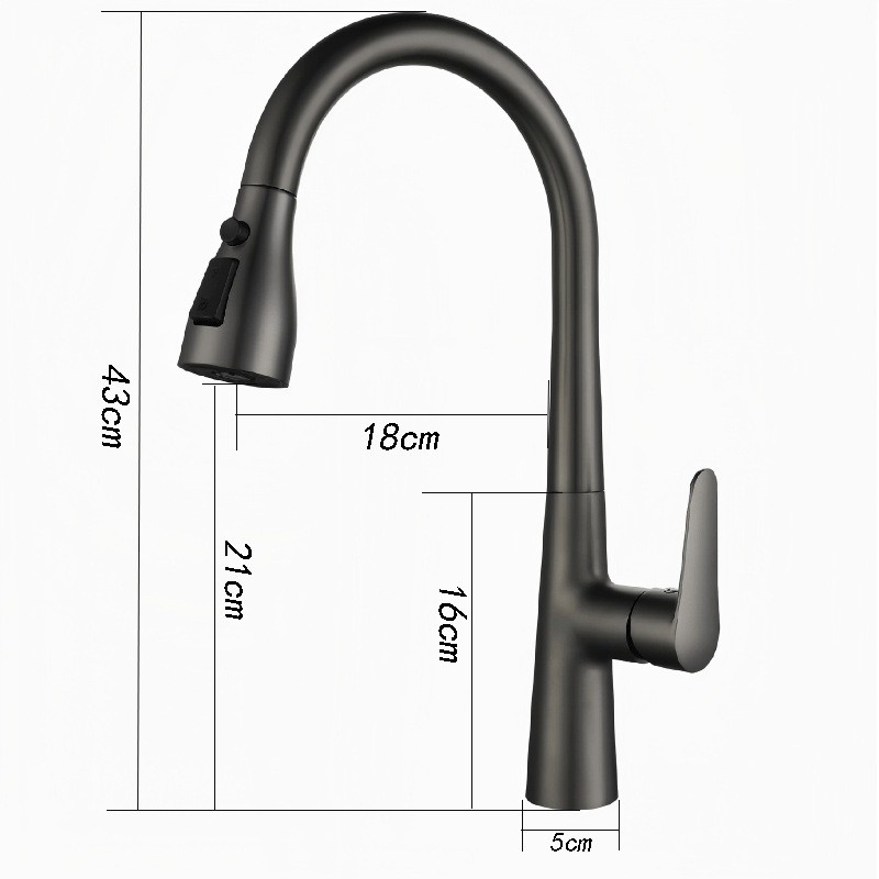 Сучасний кухонний змішувач HREDUN CP-616 — функціональне рішення для щоденного використання. Оснащений висувною лійкою з гнучким шлангом довжиною 60 см, що дозволяє легко мити посуд, раковину та наповнювати великі ємності.