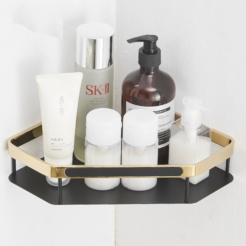 Стильна кутова полиця для ванної кімнати з поєднанням латуні та нержавіючої сталі — практичне рішення для зберігання косметики, шампунів та аксесуарів. Компактна трикутна форма ідеально підходить для монтажу в кутку, дозволяючи раціонально використовувати простір. Поверхня має антикорозійне покриття, стійке до вологи та перепадів температур. Полиця легко очищується та не потребує спеціального догляду. Підходить для встановлення у ванній кімнаті, душовій зоні або на кухні.