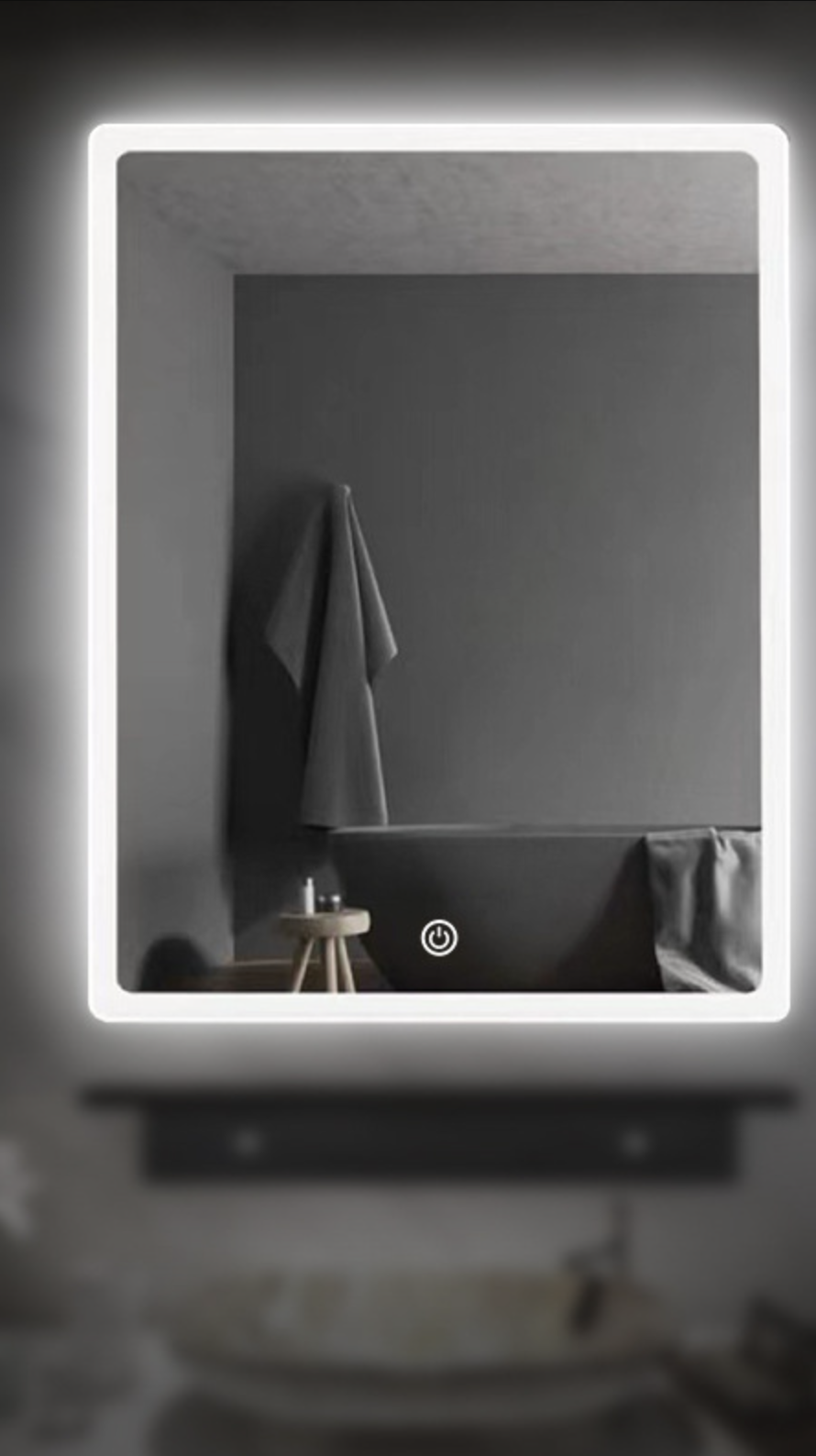Сучасне прямокутне LED дзеркало без рами для ванної кімнати. Версія warm light single touch button + stepless dimming оснащена теплим підсвічуванням, одним сенсорним керуванням та функцією плавного регулювання яскравості.