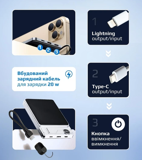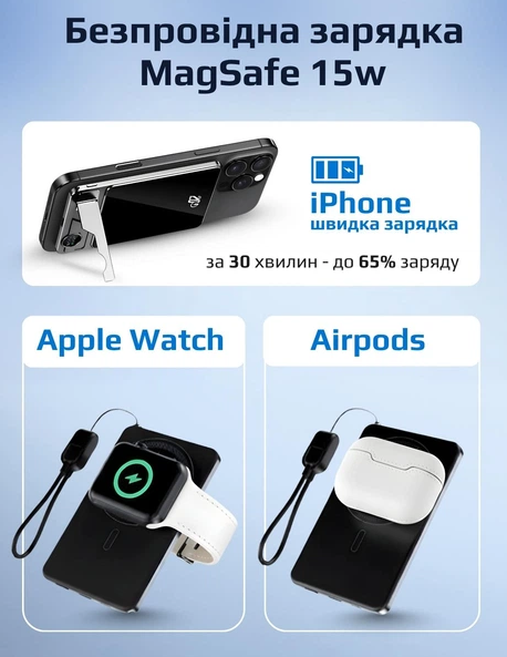 🔋 Магнітний павербанк F15 3-в-1 з підставкою