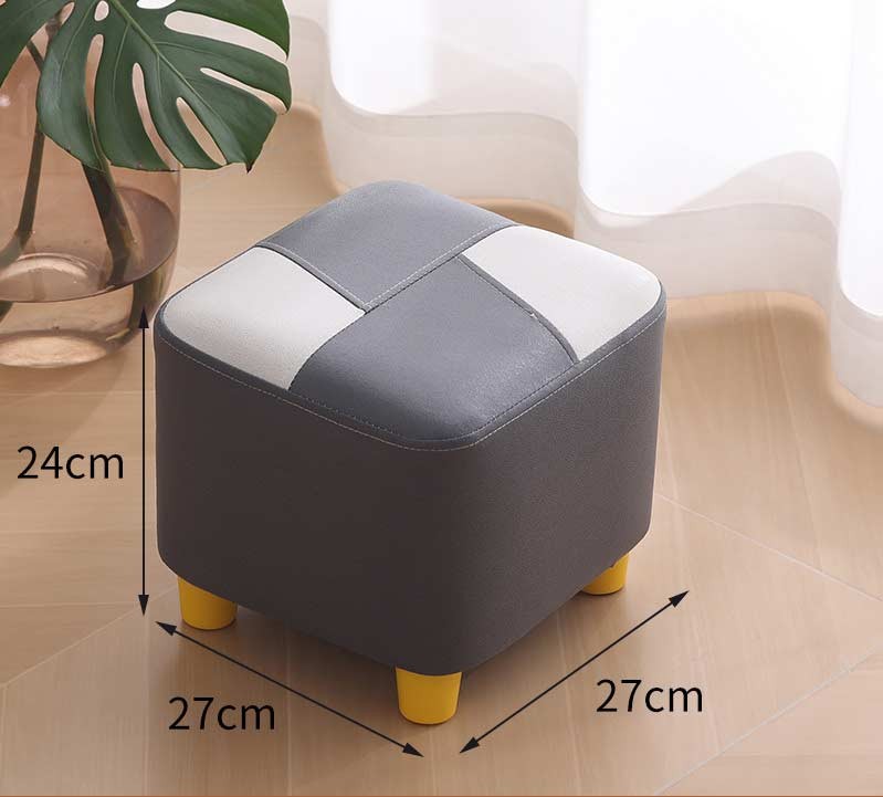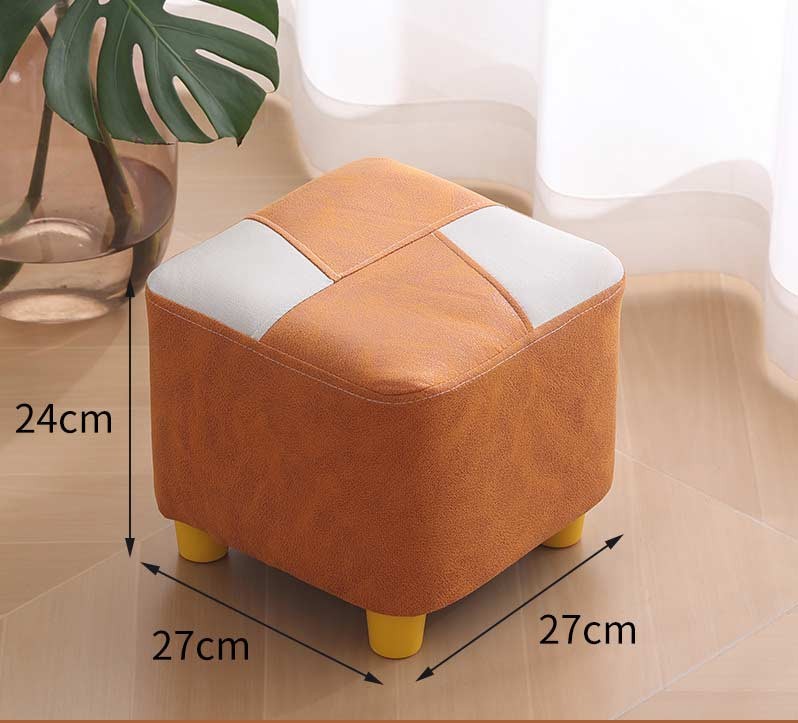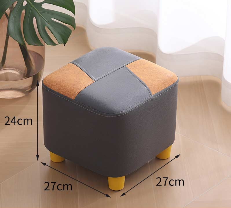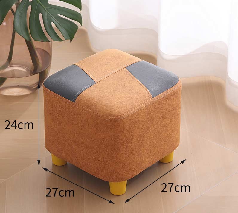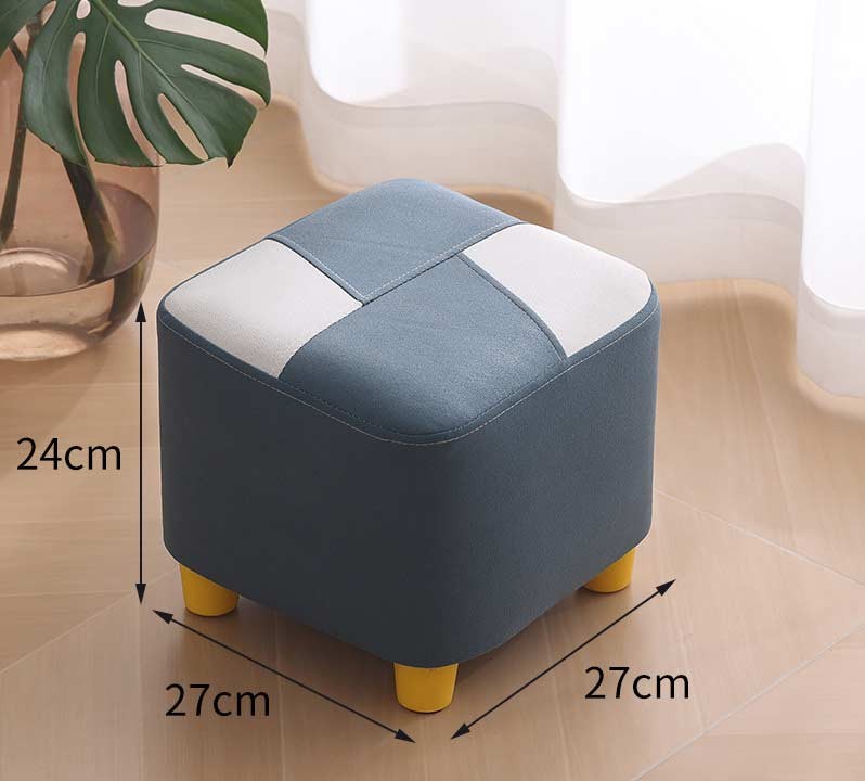 Маленький пуф 27×27×24 см з м’яким сидінням, тканинний табурет на дерев’яних ніжках