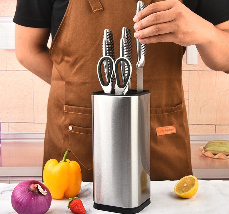 Комплект складається з 5 кохонних ножів, ножиць та металевої підставки.