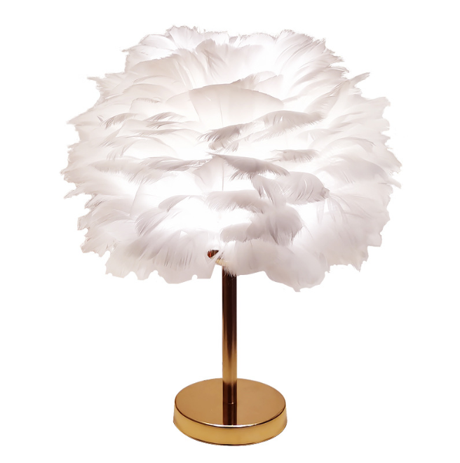 Елегантна настільна лампа з абажуром із м’якого декоративного пір’я стане справжньою прикрасою будь-якого інтер’єру. Вона створює тепле та затишне освітлення, яке ідеально підходить для спальні, вітальні, дитячої кімнати або зони відпочинку.