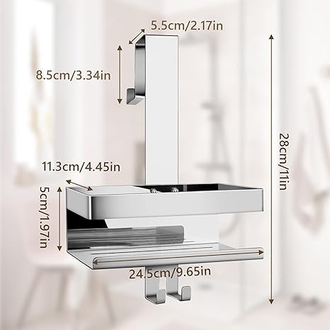 Виготовлена з якісної нержавіючої сталі, стійкої до вологи, корозії та щоденного використання. Конструкція передбачає кріплення до душової стійки, що дозволяє раціонально використати простір.