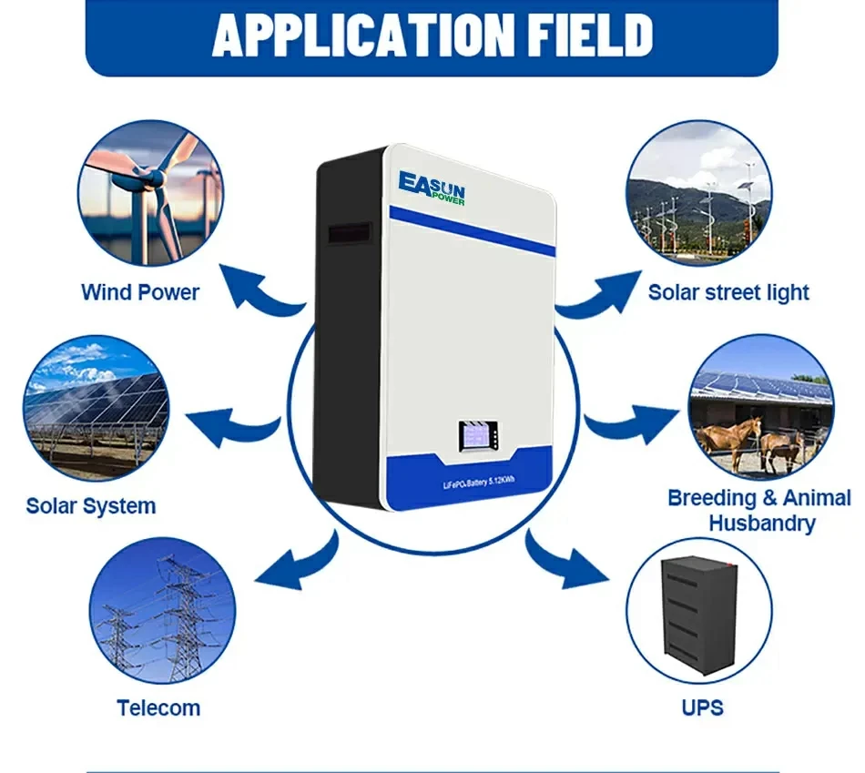 EASUN POWER LiFePO₄ 51.2V 100Ah — це настінний літій-залізо-фосфатний акумулятор для систем домашнього зберігання енергії (ESS), гібридних та off-grid інверторів. Модель призначена для стабільного накопичення сонячної енергії та резервного живлення будинку.