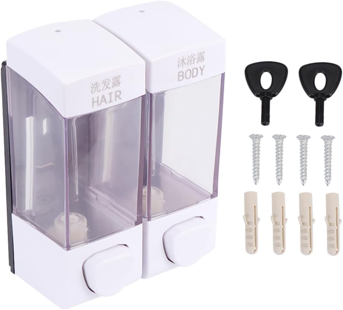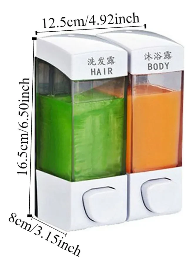 Практичний настінний дозатор із двома окремими секціями — зручне рішення для ванної кімнати, душової або кухні. Дозволяє зберігати та використовувати різні засоби одночасно (наприклад, шампунь і гель для душу), економлячи місце та підтримуючи порядок.