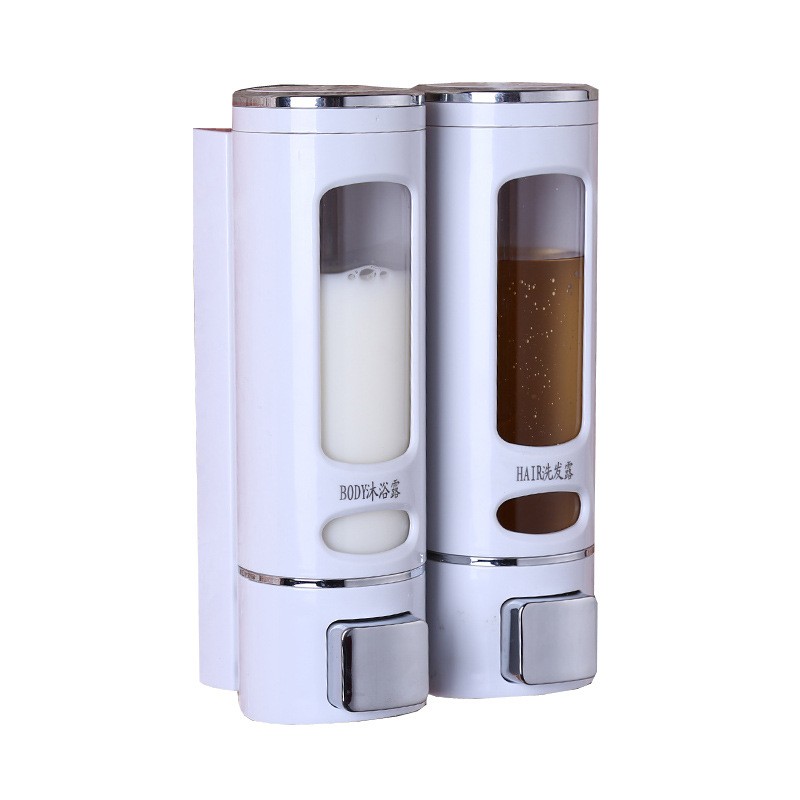 Стильний та практичний настінний дозатор із двома окремими колбами — зручне рішення для ванної кімнати, душової кабіни або готелю. Модель дозволяє одночасно використовувати два різні засоби: шампунь і гель для душу або мило та кондиціонер.