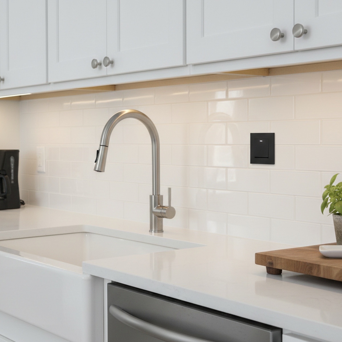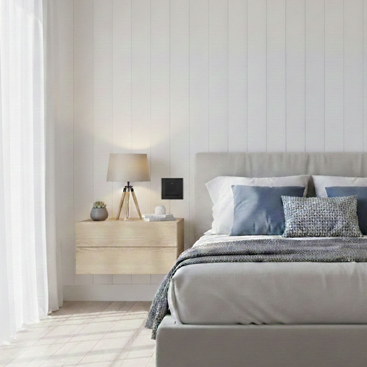 Стильний одноклавішний вимикач світла EIOMR — сучасне та надійне рішення для керування освітленням у житлових і комерційних приміщеннях. Мінімалістичний дизайн у чорному матовому кольорі виглядає стримано й преміально, ідеально поєднується з сучасними інтер’єрами: квартира, будинок, офіс, готель або апартаменти.