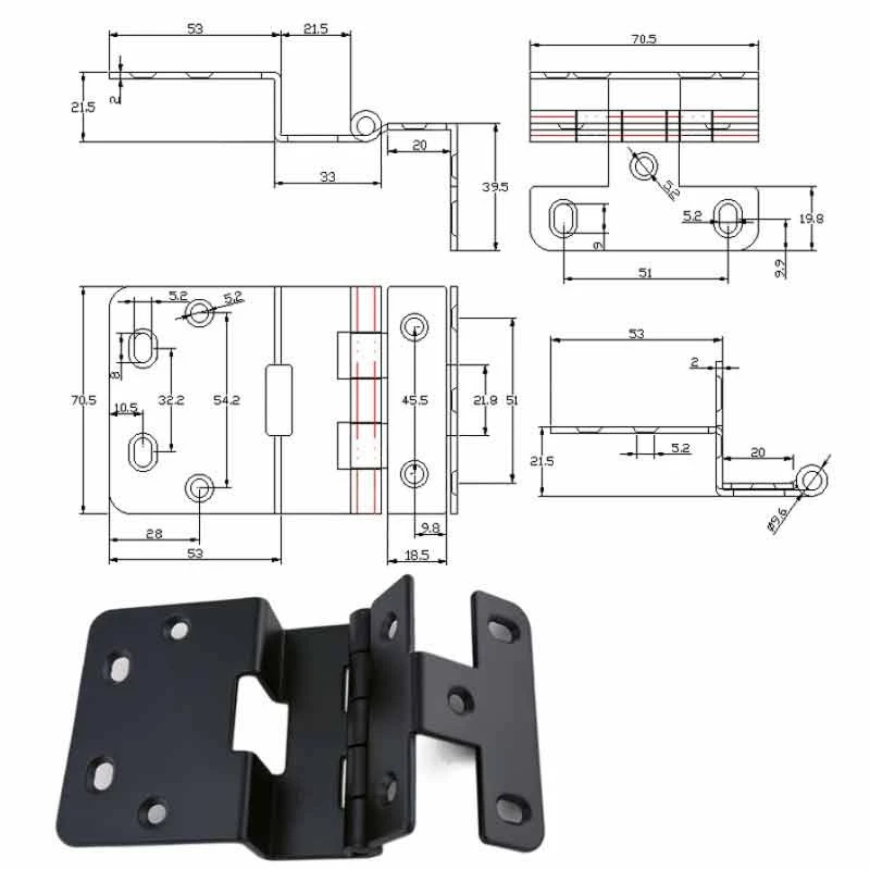 Посилена складна петля для меблів та дверцят HY2730, металева, 70,5×53 мм, з гвинтами