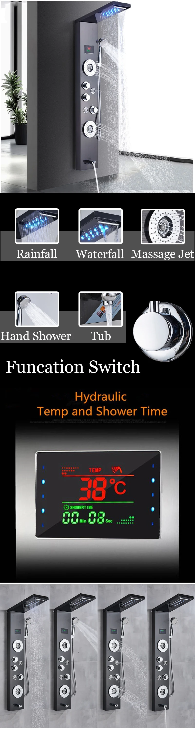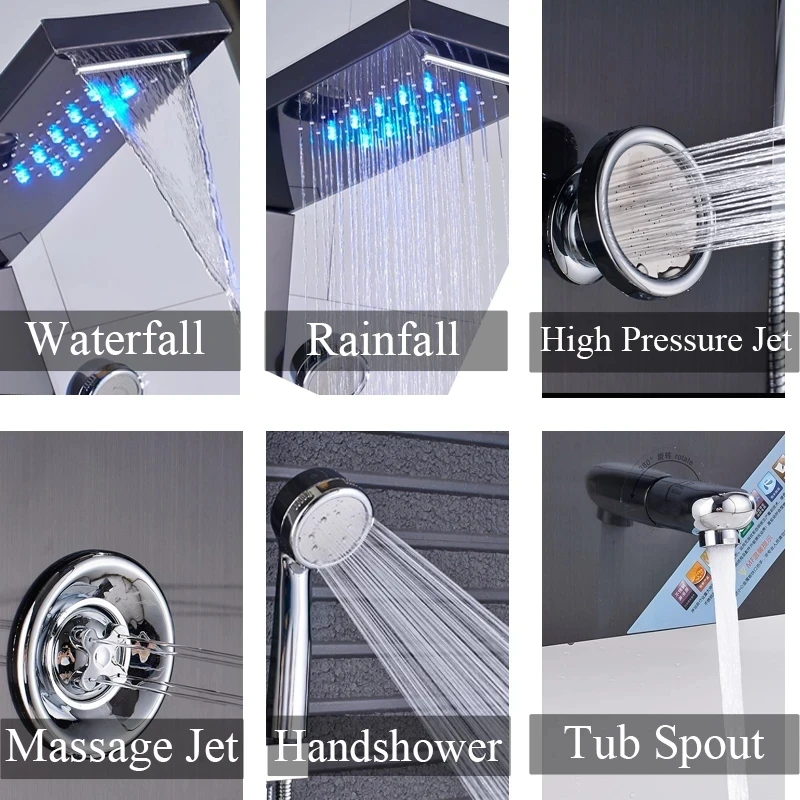 Цифровий дисплей відображає температуру води в реальному часі. Система підтримує функції тропічного душу, масажу, автоматичного наповнення та різні режими розпилення.