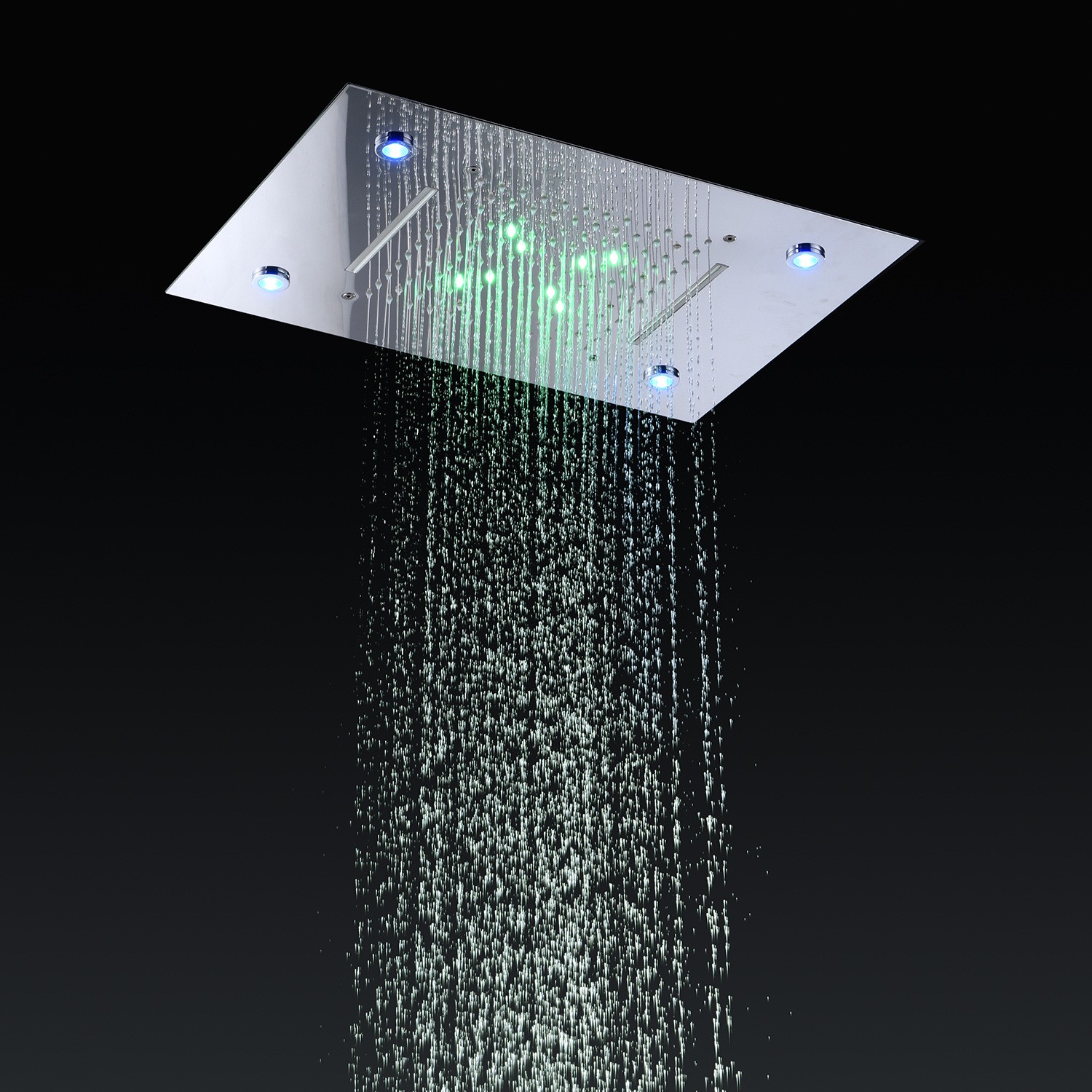 Верхній душ великого формату 500×360 мм створює ефект тропічного дощу, а бокові форсунки забезпечують масажний ефект. Передбачено автоматичне наповнення та LED-підсвітку для сучасного вигляду.