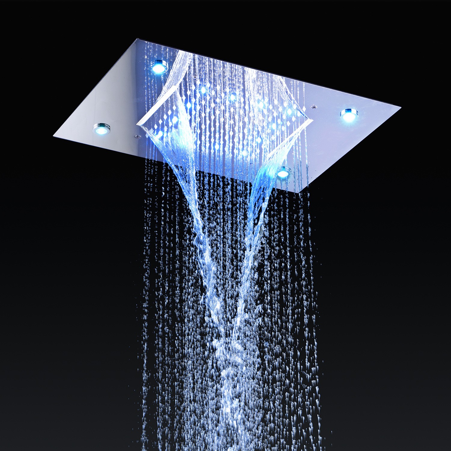 HM-836009 — це багатофункціональна вбудована душова система у стилі American Style з ефектом водоспаду, боковими масажними форсунками та LED-підсвіткою.