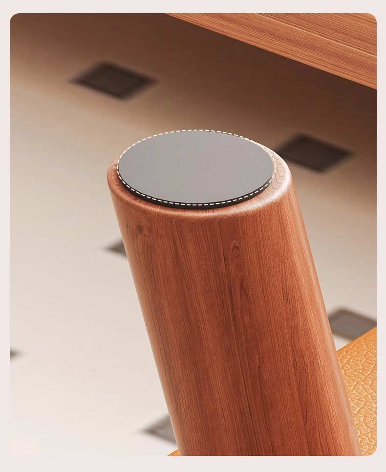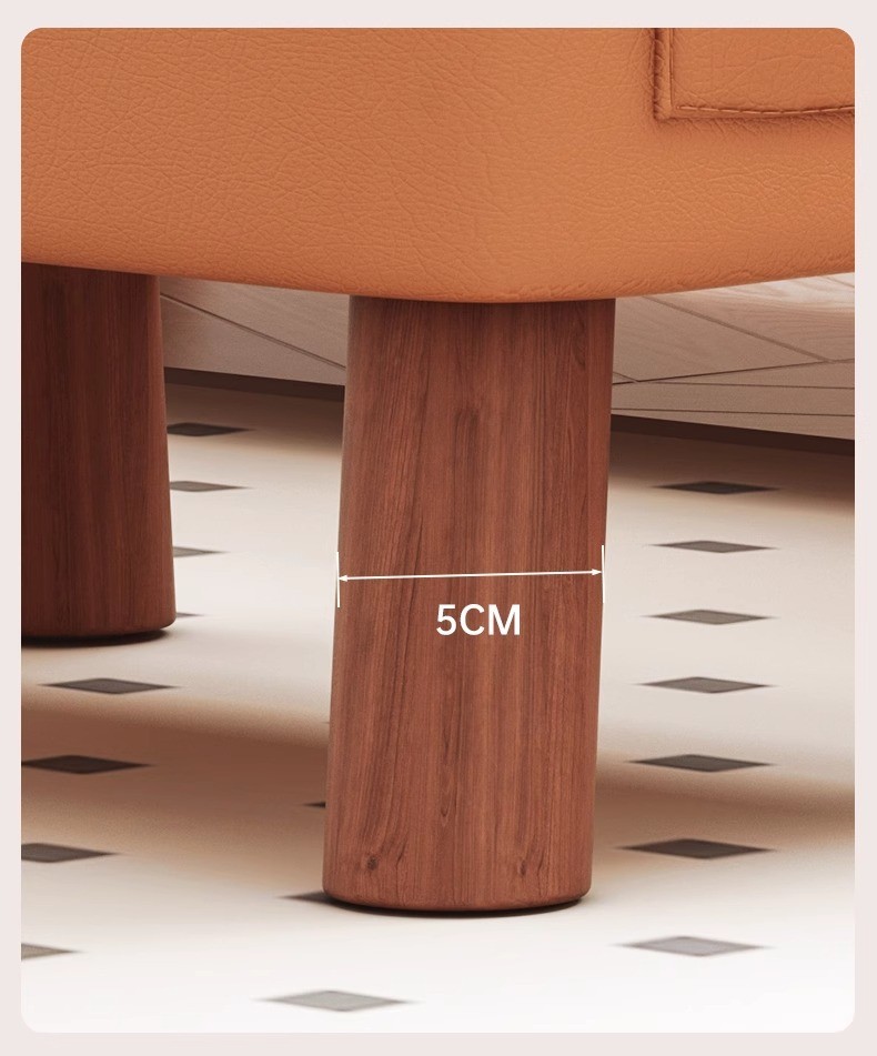 М’яке сидіння з декоративною прошивкою наповнене щільною губкою, що забезпечує комфорт під час використання. Оббивка виконана з якісної екошкіри, яка стійка до зношування та легко очищується. Міцні ніжки з масиву дерева гарантують хорошу стійкість і довговічність конструкції.