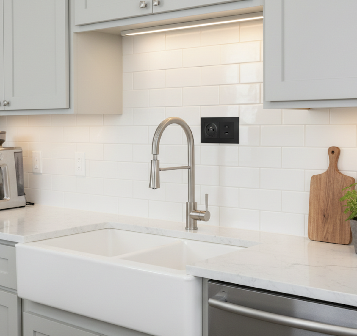 Стильна та функціональна електрична розетка з USB-портами – сучасне рішення для дому, квартири або офісу. Мінімалістичний дизайн у чорному матовому кольорі виглядає дорого та гармонійно вписується в сучасні інтер’єри: кухню, спальню, ванну кімнату, вітальню, передпокій або робочу зону.