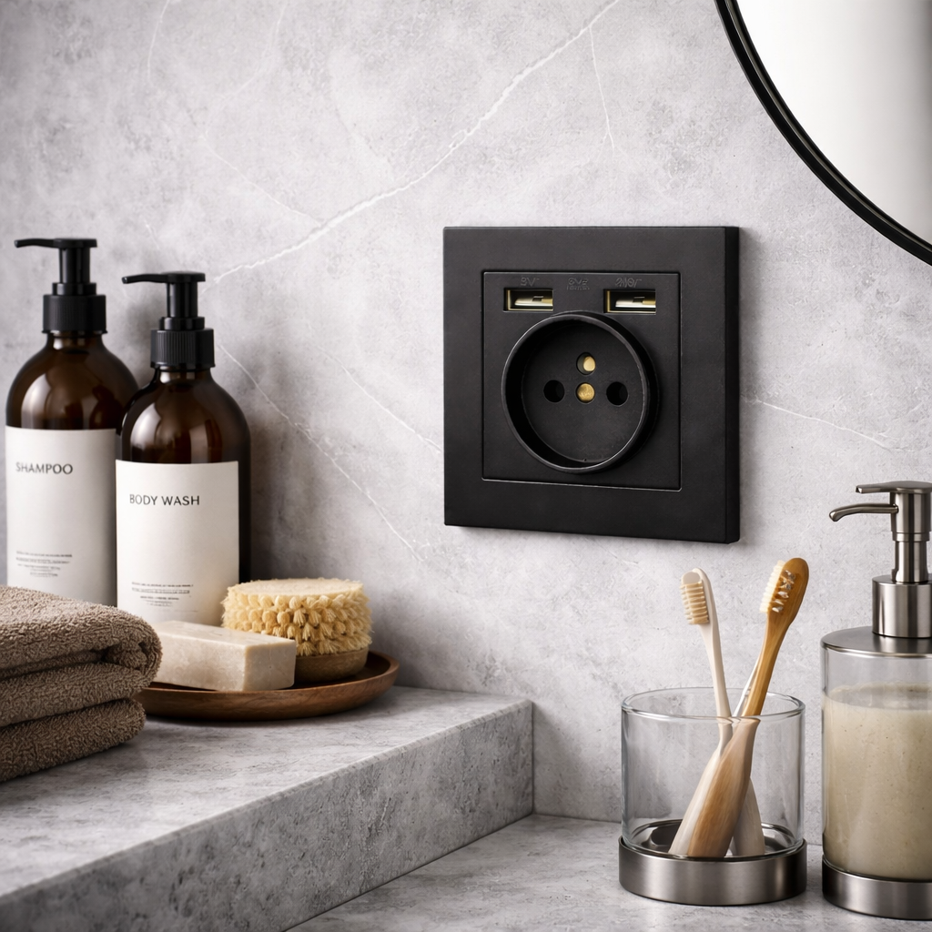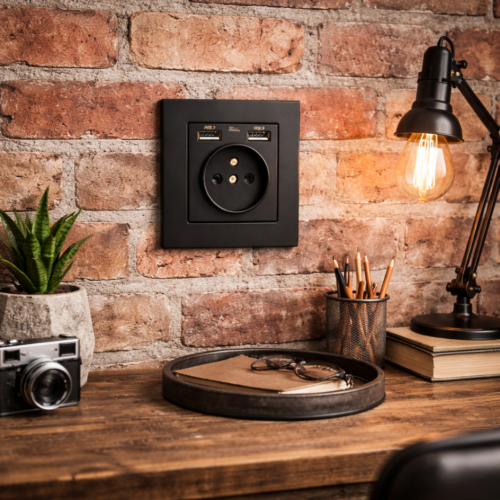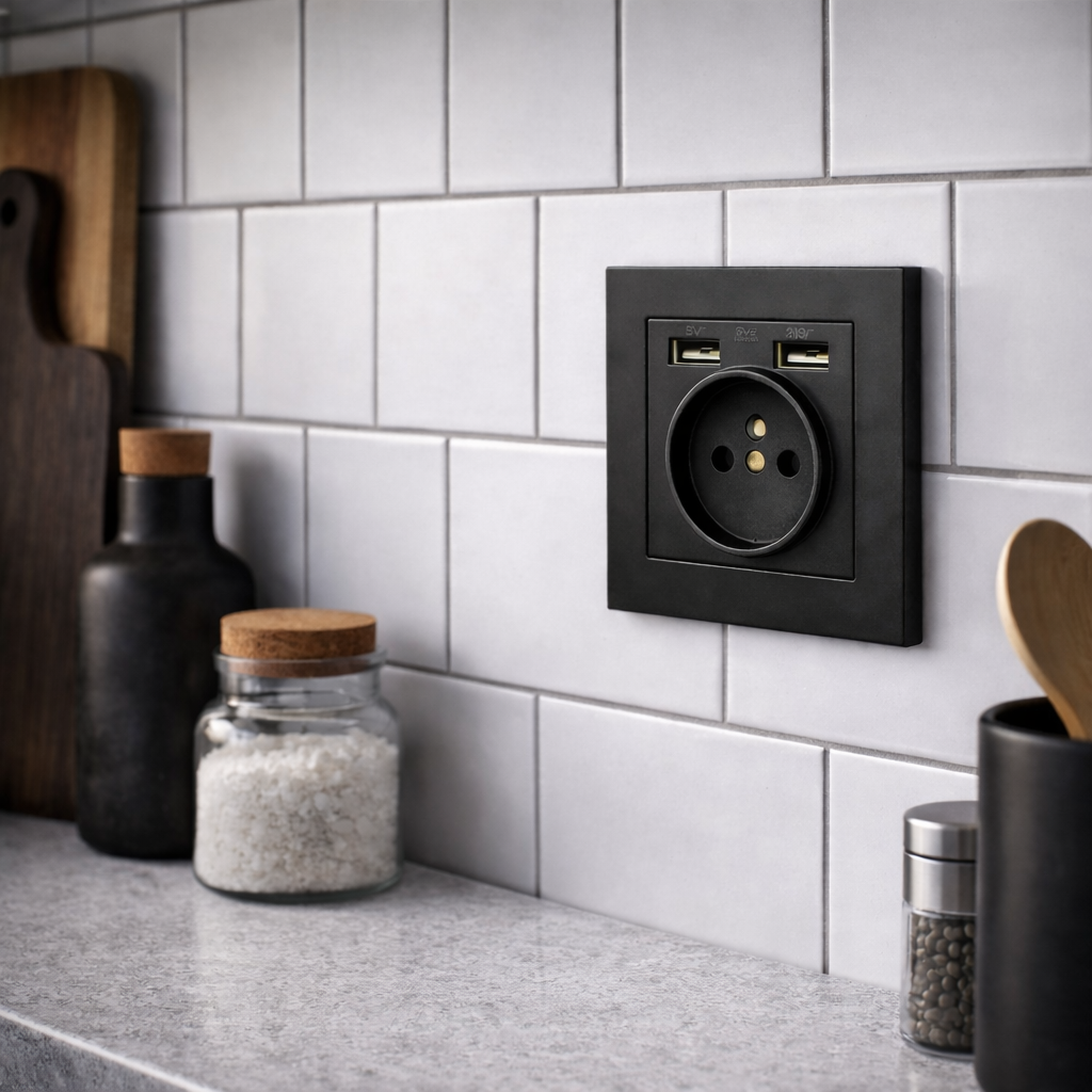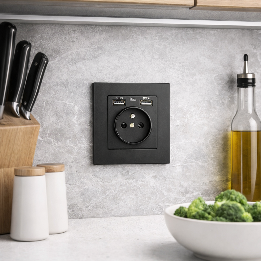 Стильна та функціональна електрична розетка з USB-портами – сучасне рішення для дому, квартири або офісу. Мінімалістичний дизайн у чорному матовому кольорі виглядає дорого та гармонійно вписується в сучасні інтер’єри: кухню, спальню, ванну кімнату, вітальню, передпокій або робочу зону.