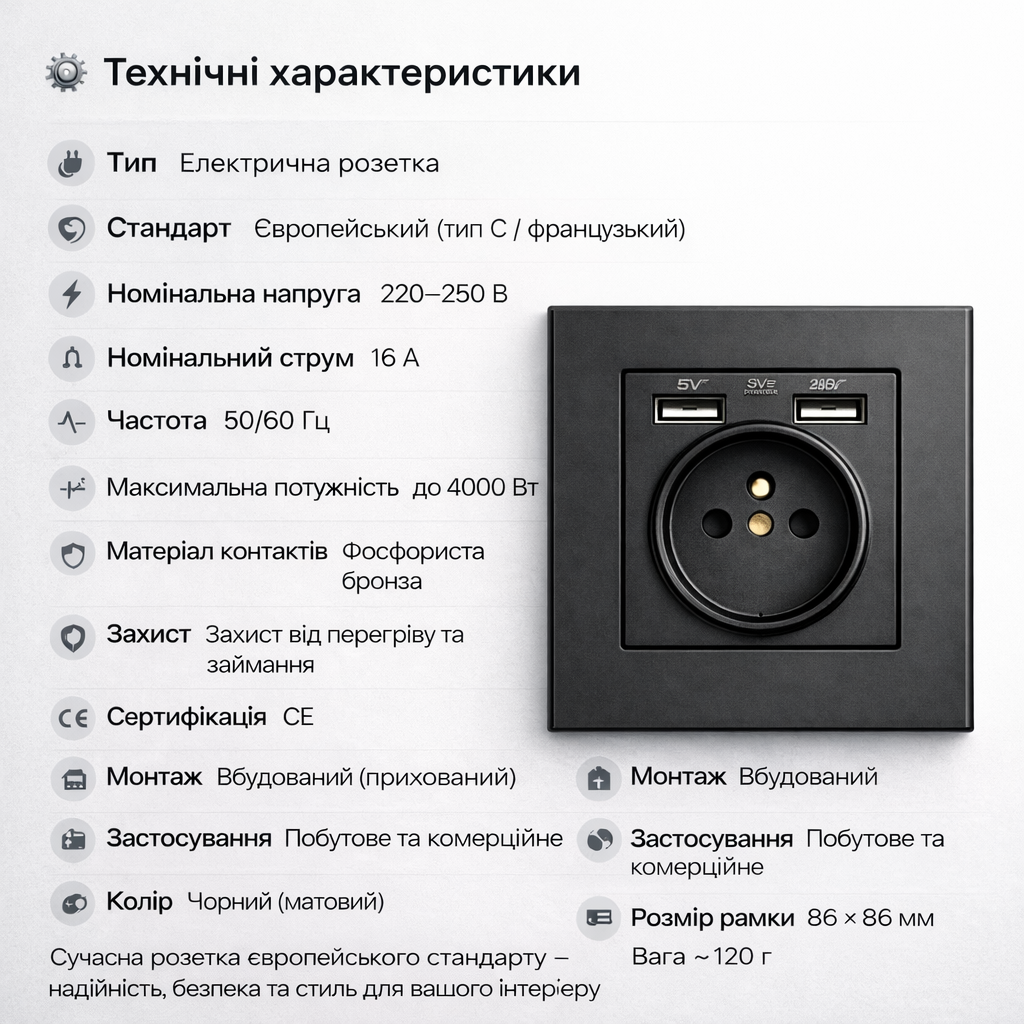 🔌 Стильна електрична розетка з двома портами USB-A